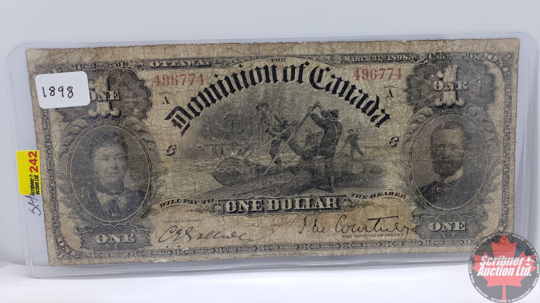 Dominion of Canada $1 Bill 1898 (Courtney 496774) (Ones Inward) (See Pics for Signatures/Serial Numbers)