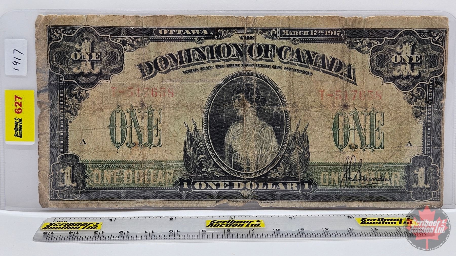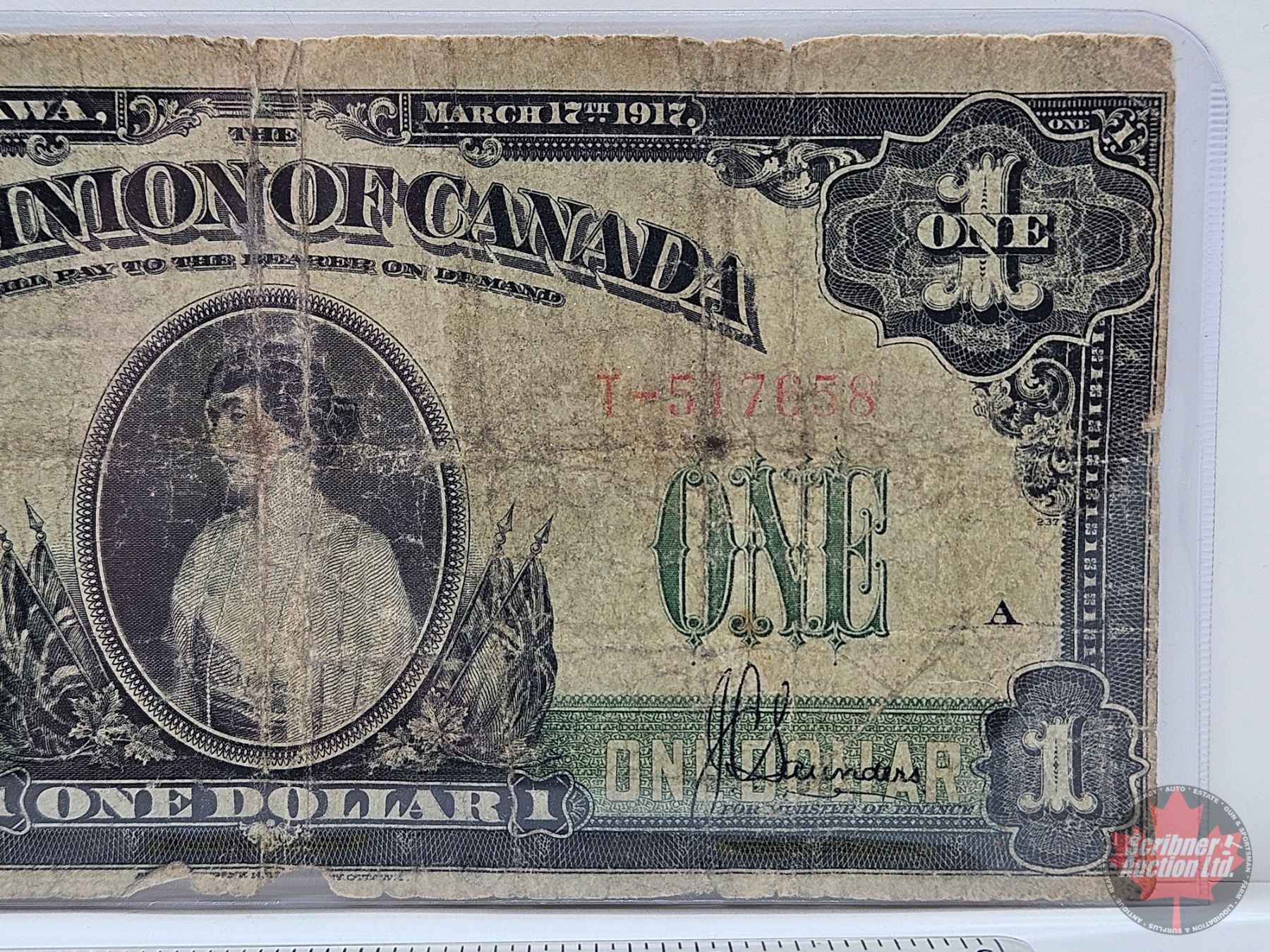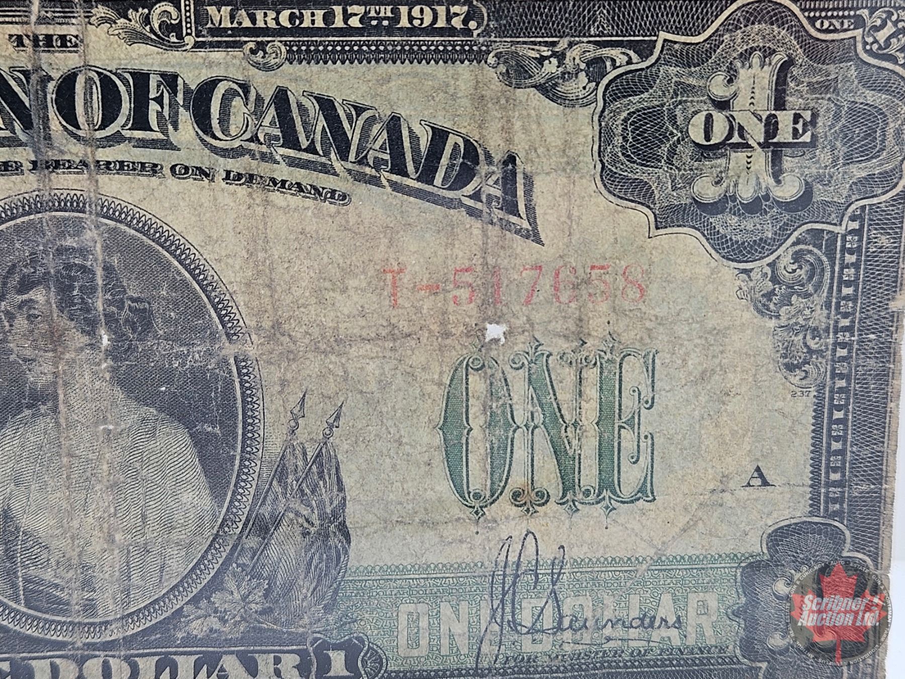 Dominion of Canada $1 Bill 1917 : ONE at right : Saunders #T-517658