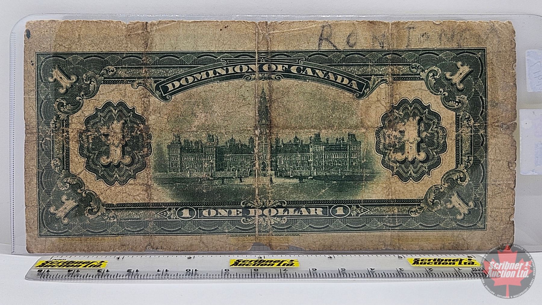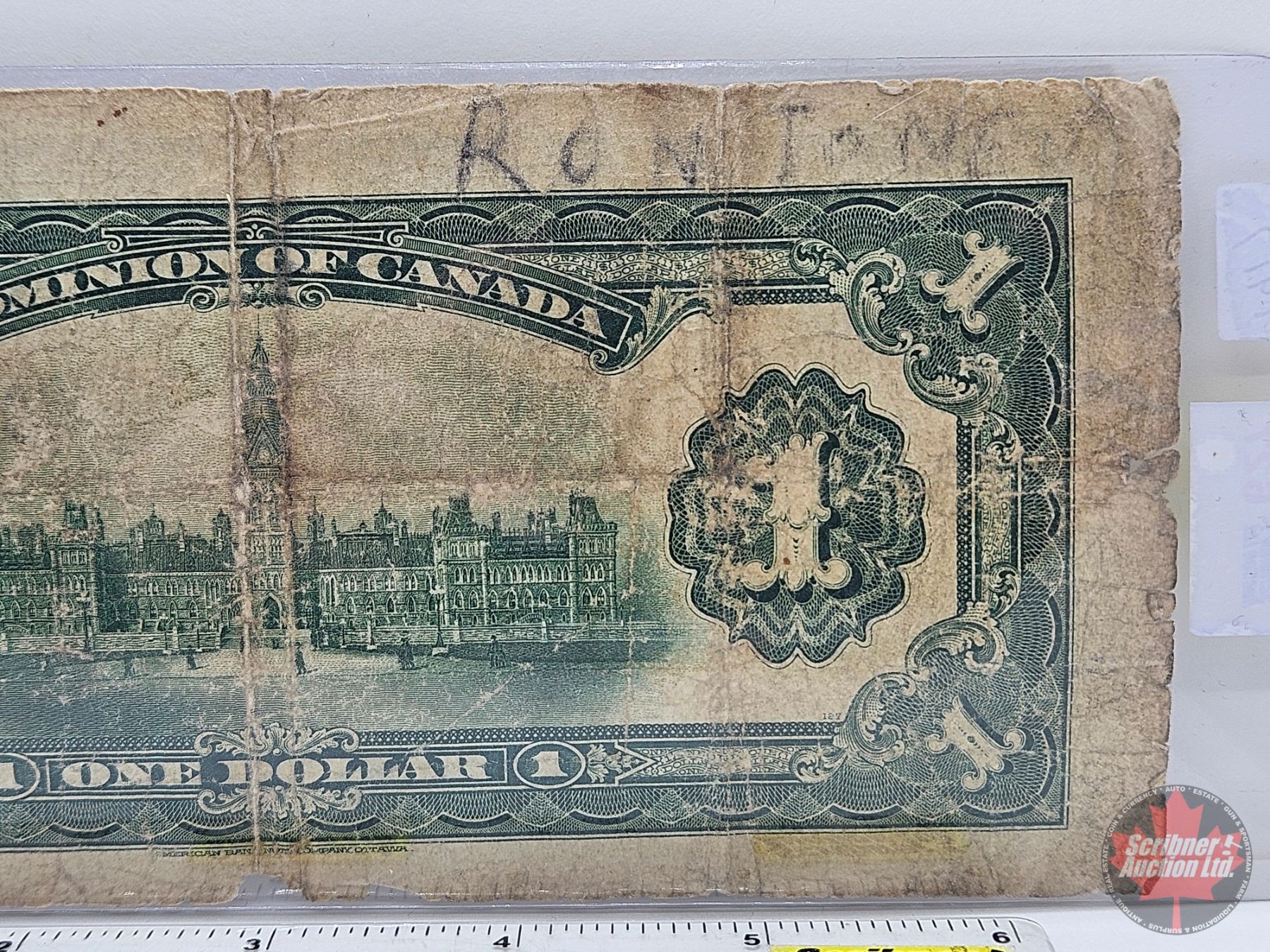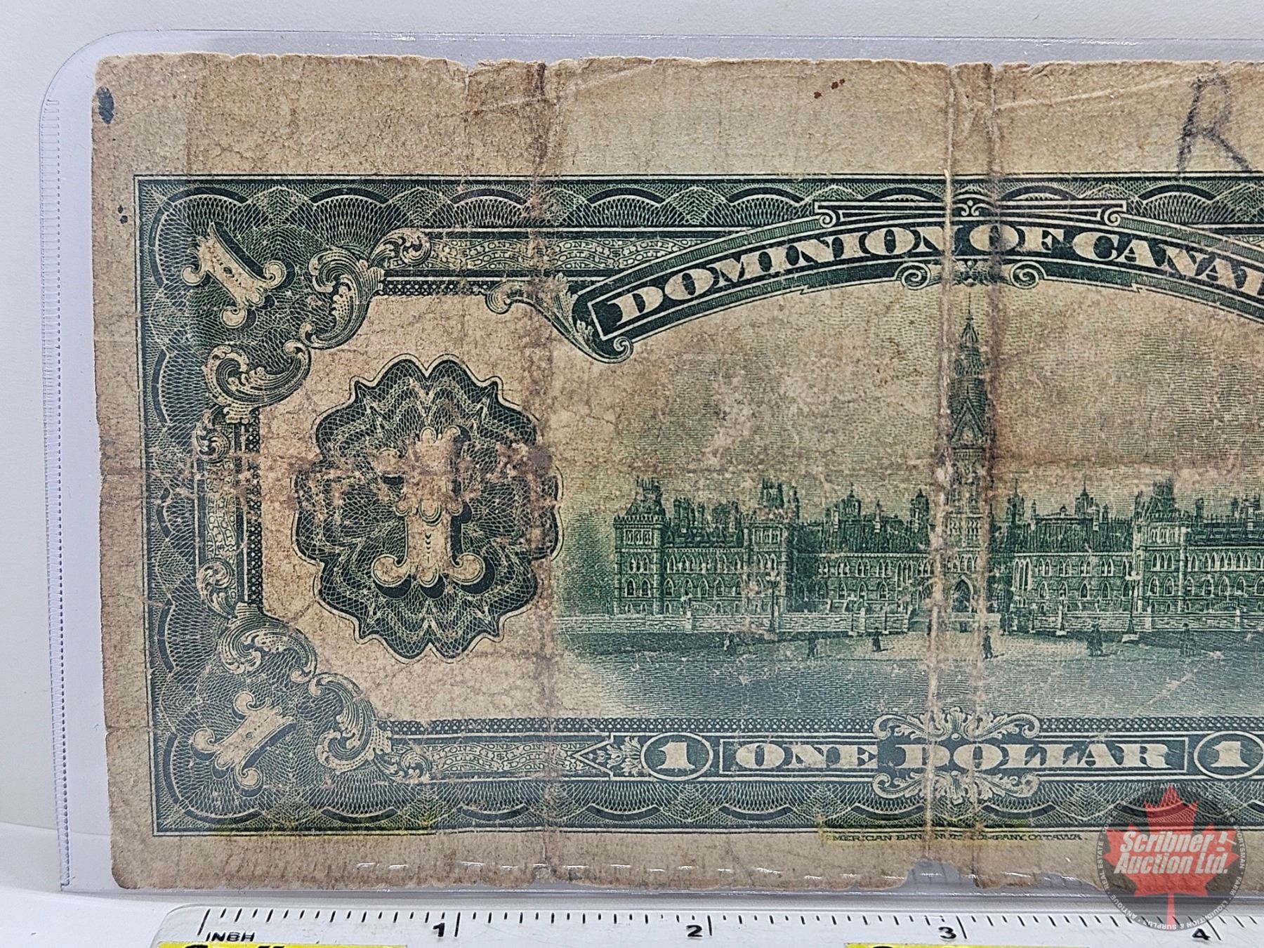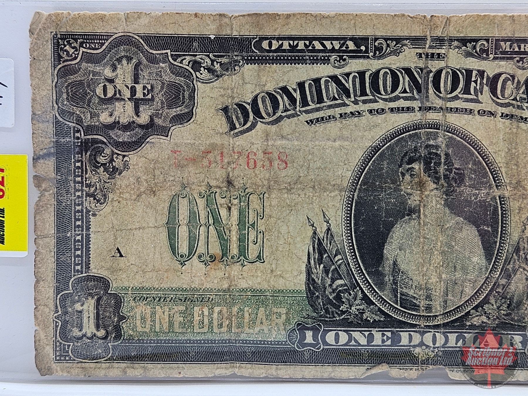 Dominion of Canada $1 Bill 1917 : ONE at right : Saunders #T-517658