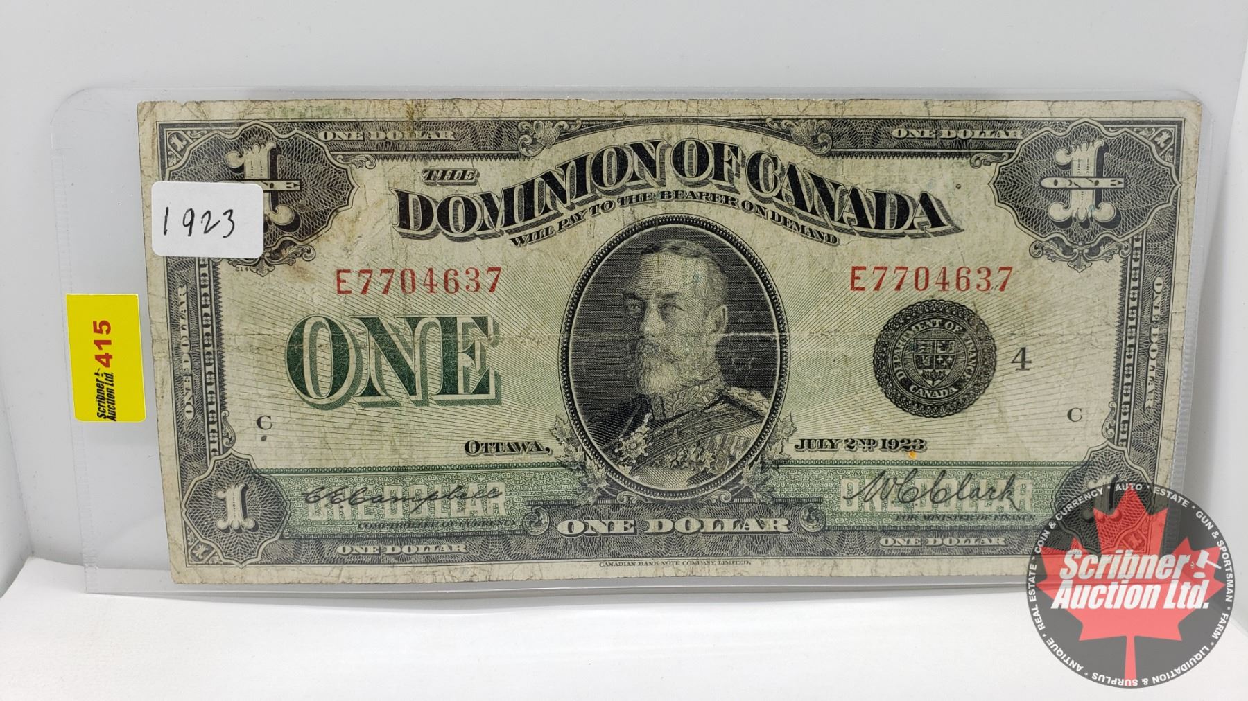 Dominion of Canada $1 Bill 1923 "Horse Blanket" (#E7704637 Campbell/Clark) (See Pics for Signatures/Serial Numbers)