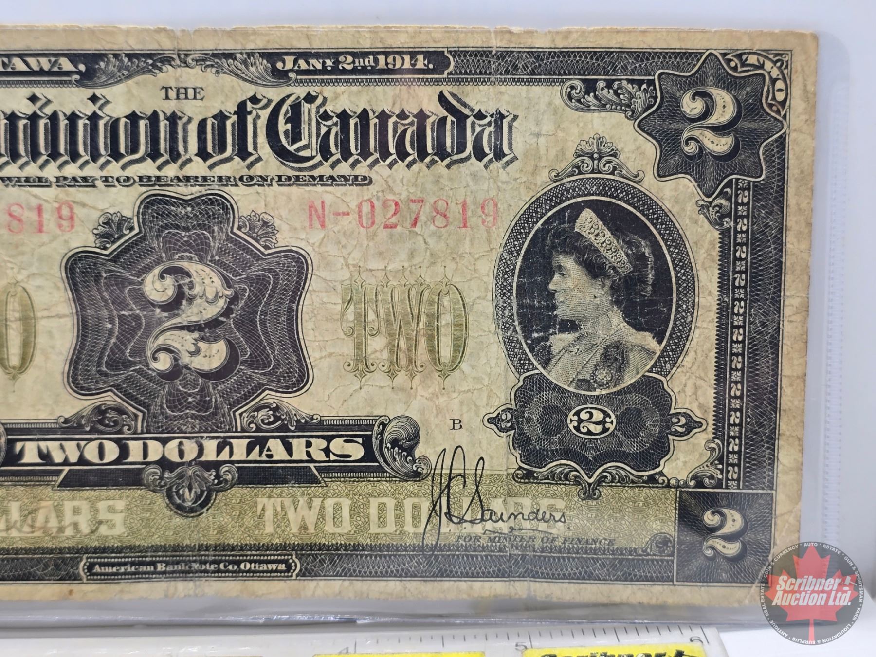 Dominion of Canada $2 Bill 1914 : "B" Series : Saunders #N-027819