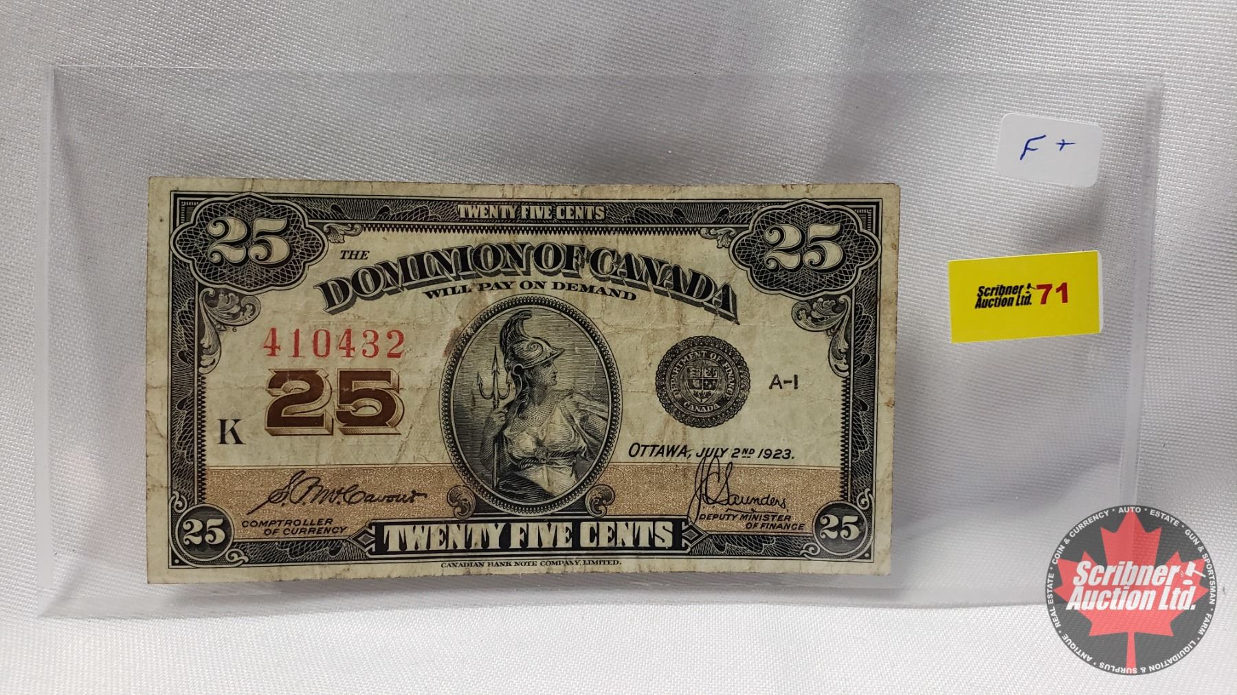 Dominion of Canada Twenty Five Cent "Shinplaster" 1923 (See Pics for Signatures/Serial Numbers)