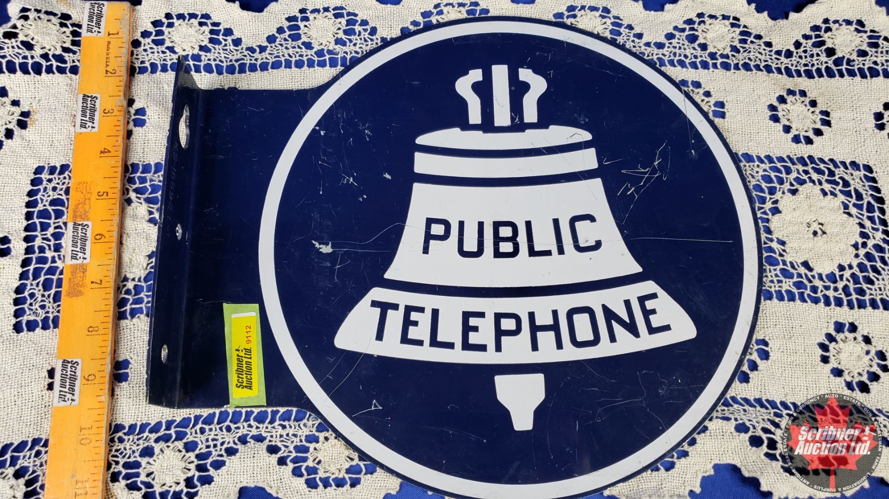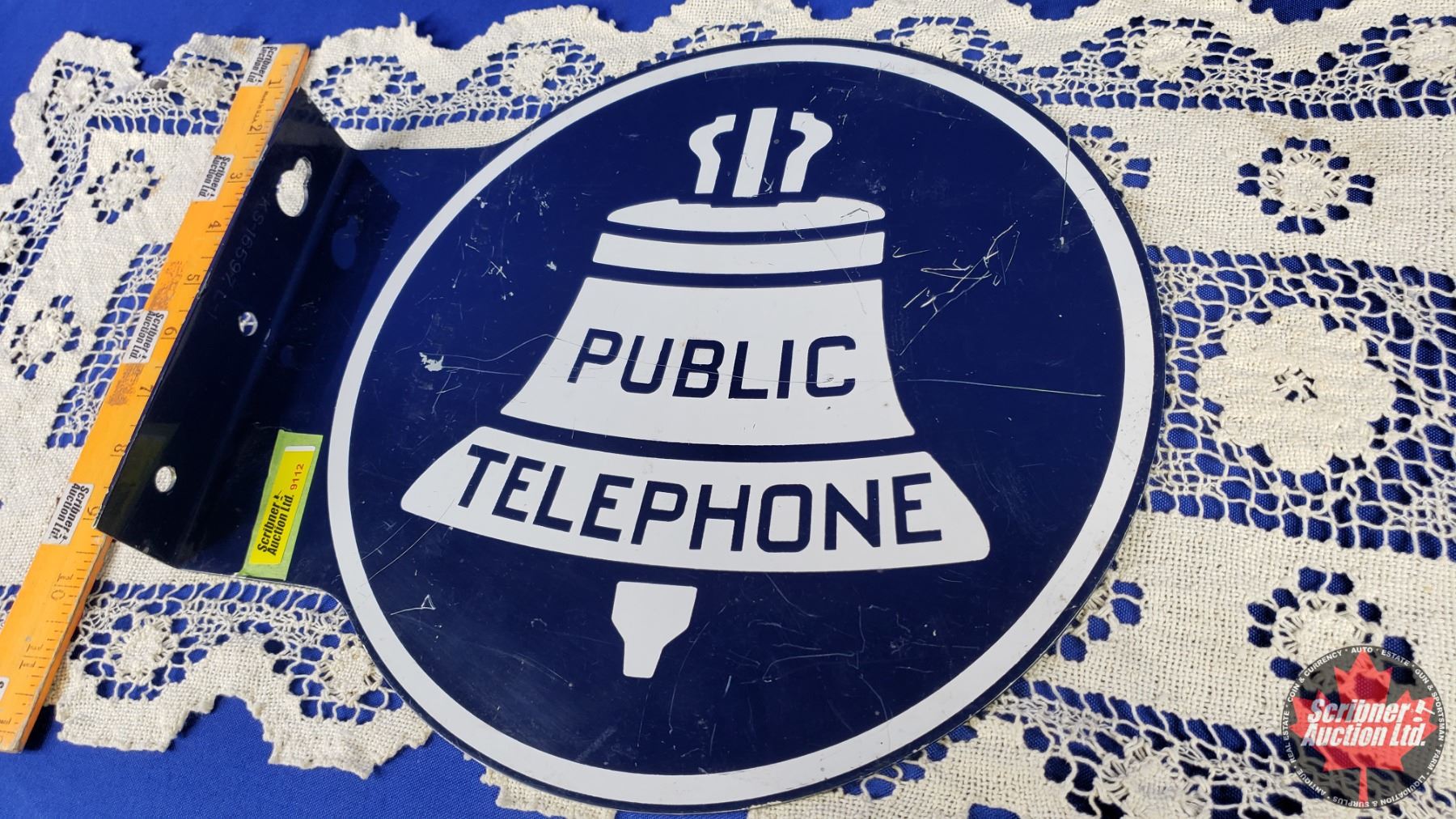 Double Side Enamel Flange Sign "PUBLIC TELEPHONE" (12-3/4" x 11-1/4"Dia) (SEE PICS!)