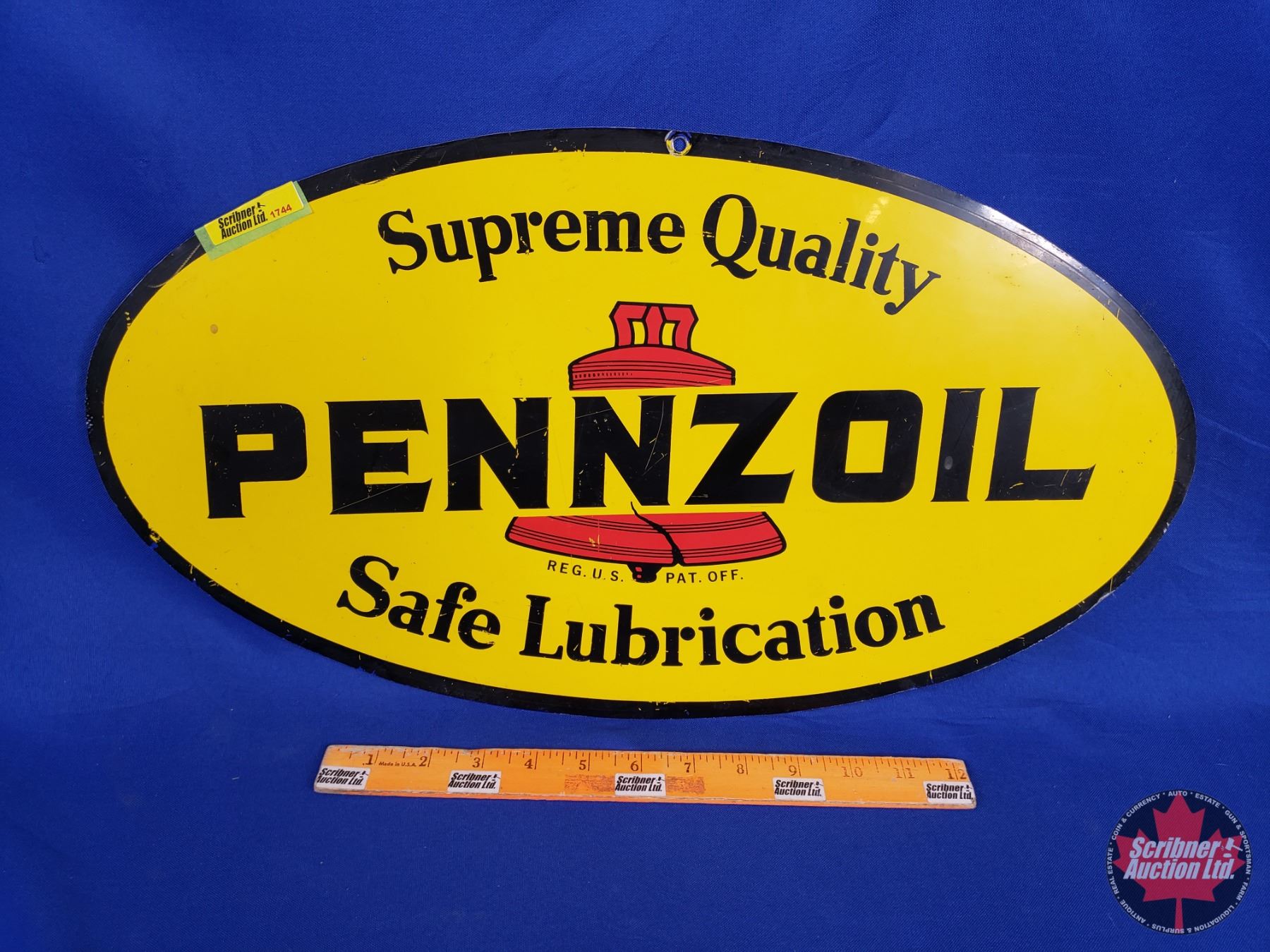 Double Side Oval Tin Sign "PENNZOIL" (11-1/4"H x 20-1/4"W) (SEE PICS!)