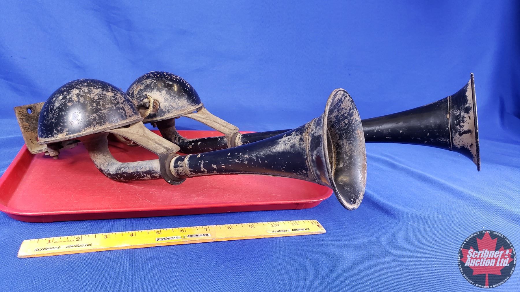 Double Trumpet Car Horn (Not Working - Needs Cleaning) (6"H x 10'W x 22"D) (SEE PICS!)