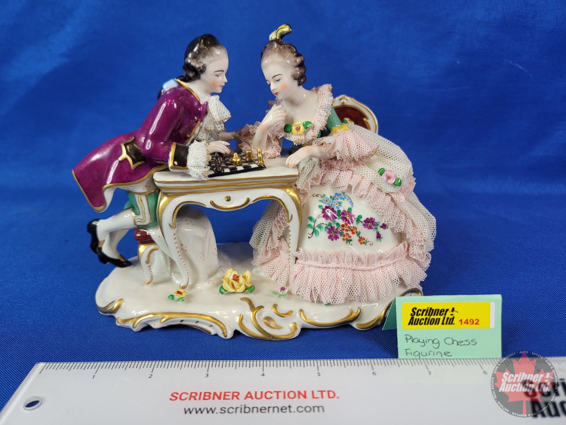 Dresden Art Figurine "Playing Chess" (Made in Germany) (SEE PICS!)