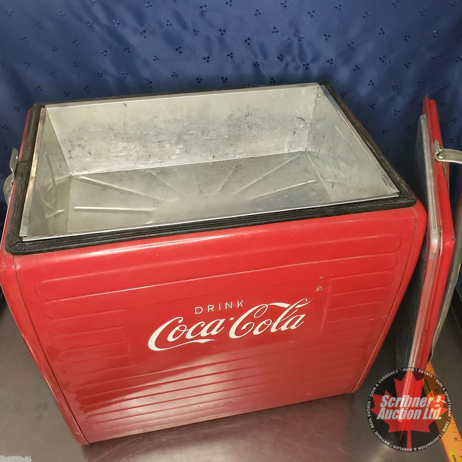 "Drink Coca-Cola" 1955 Picnic Cooler w/Sandwich Tray (16"H x 17"W x 13"D)