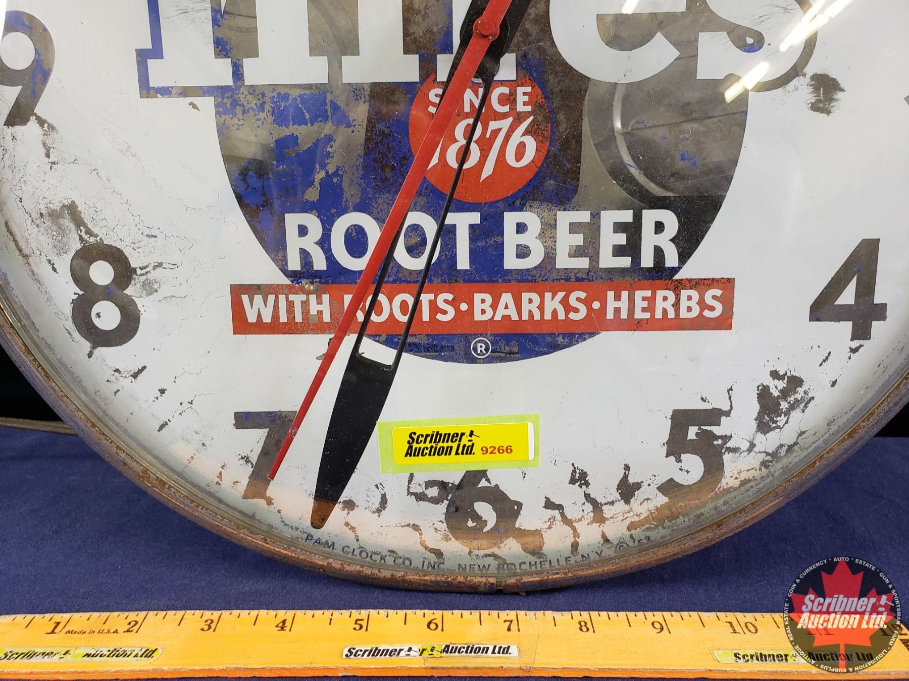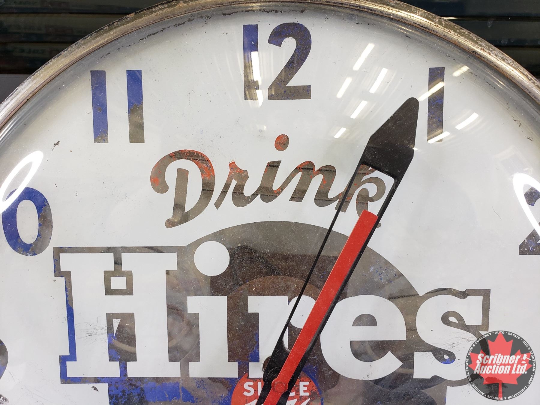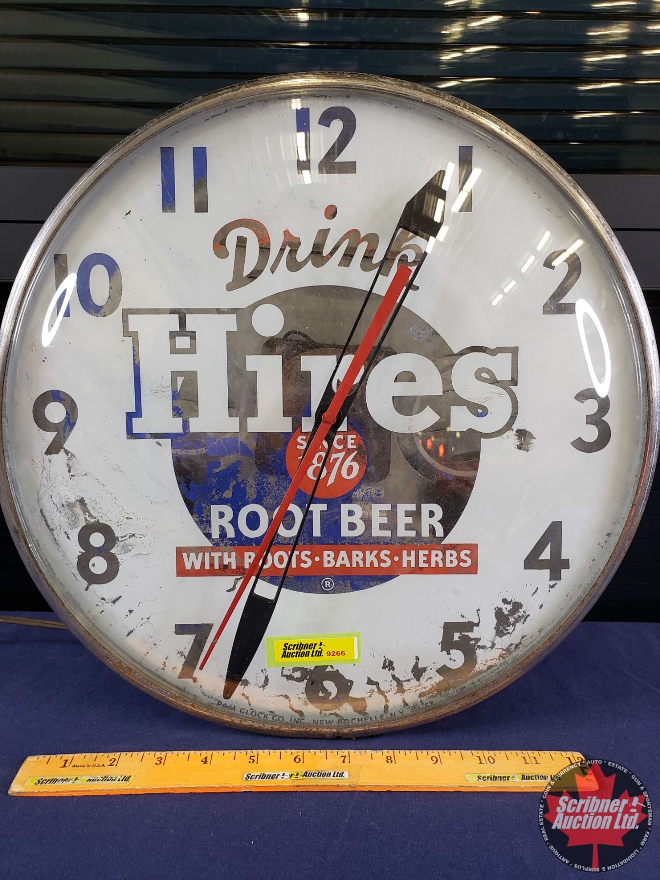 "Drink Hires ROOT BEER" Electric Wall Clock (Convex Glass Front) (Working - Needs to be upright) (15"Dia) (SEE PICS!)