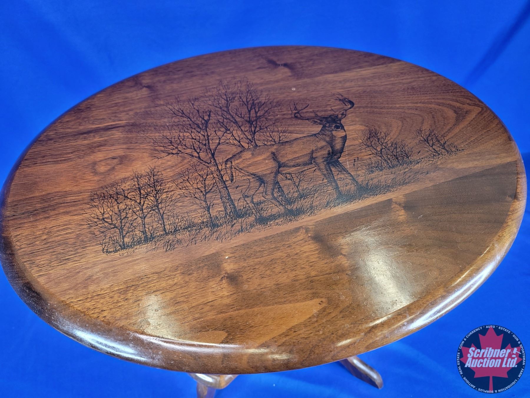 Ducks Unlimited Round Top 2 Tier Side Table (Deer/Trees Motif) (20"H x 22"Dia) (SEE PICS!)