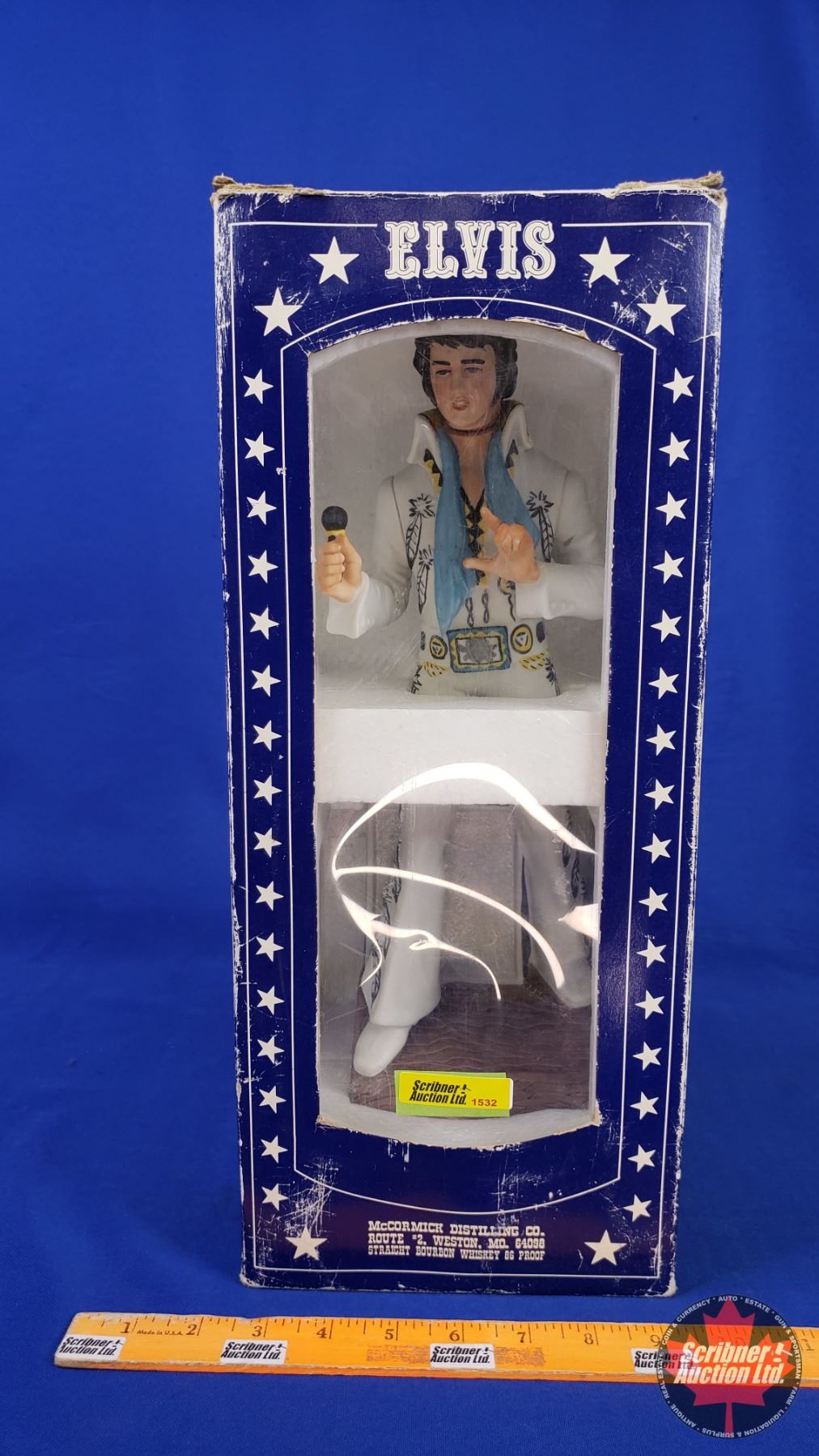 ELVIS Decanter Music Box (1977) McCormick Distilling Co. w/Orig Box (16-1/2"H x 7"W x 6-1/2"D) (SEE