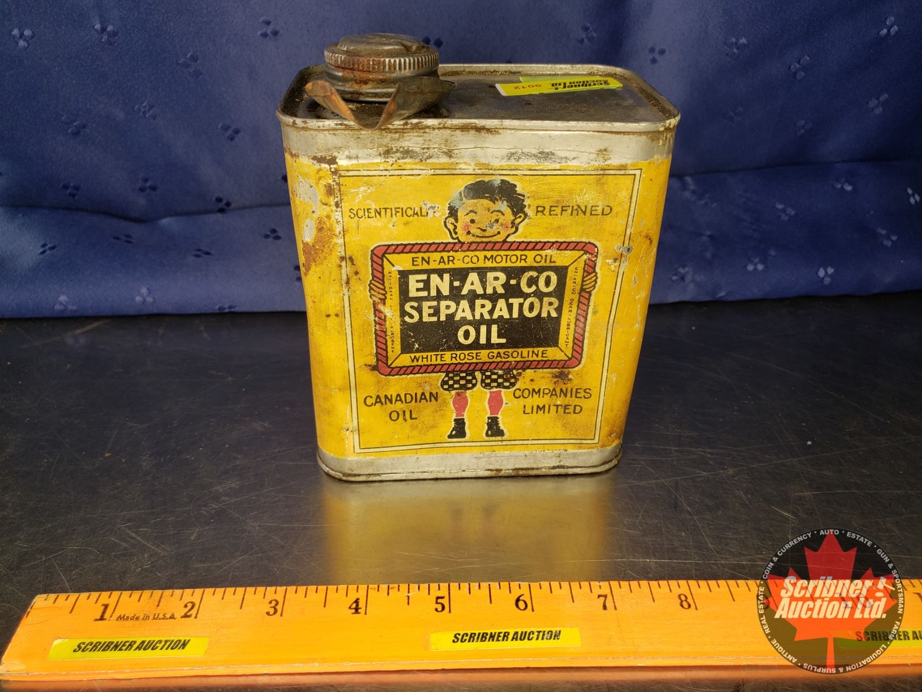 EN-AR-CO Tin "Separator Oil" (Canadian oil Companies Limited) "White Rose Gasoline" (5-1/4"H x 4-3/4"W x 3"D)