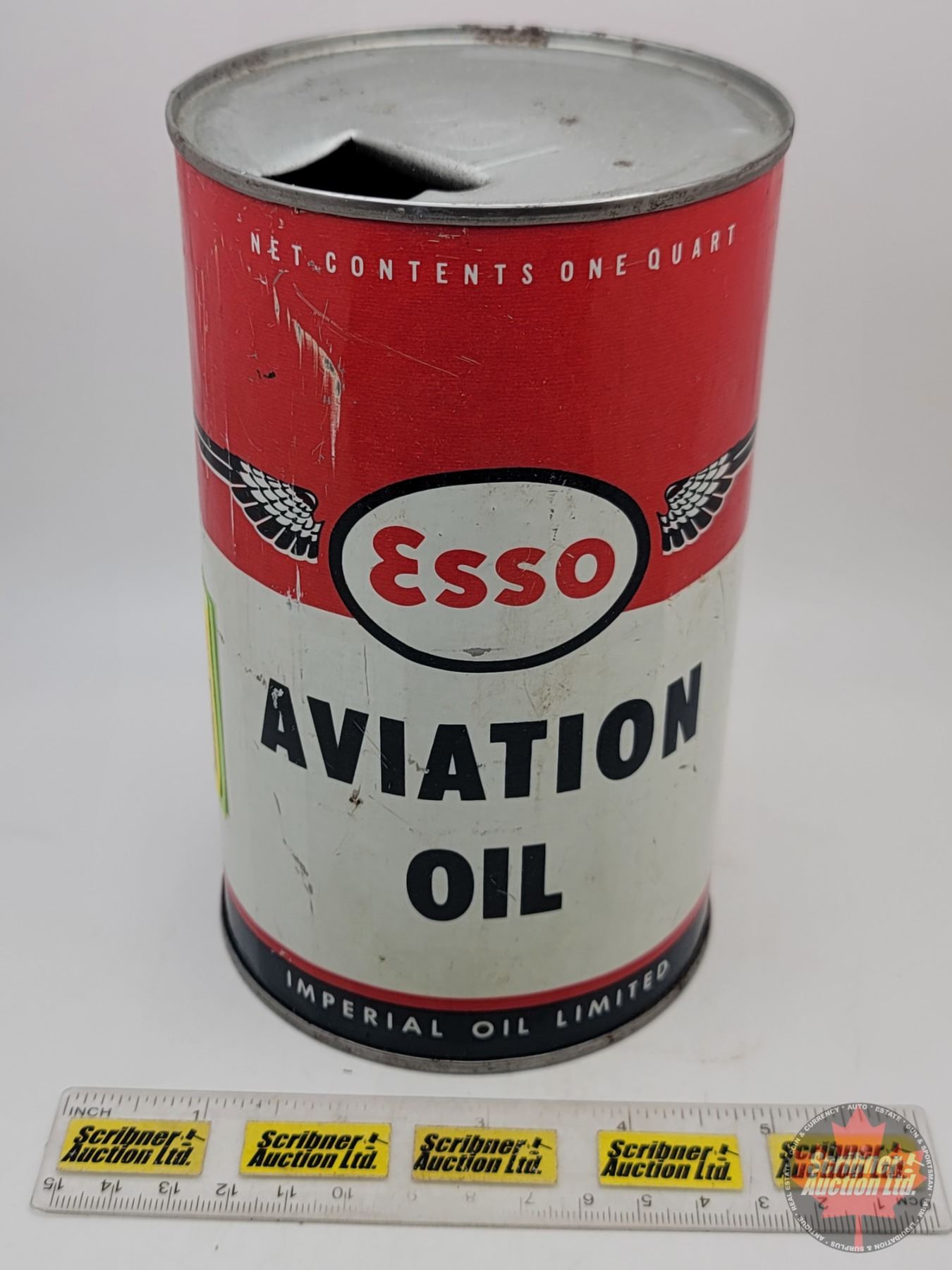 ESSO : One Imperial Quart Aviation Oil Tin (6-1/2"H x 4"Dia)