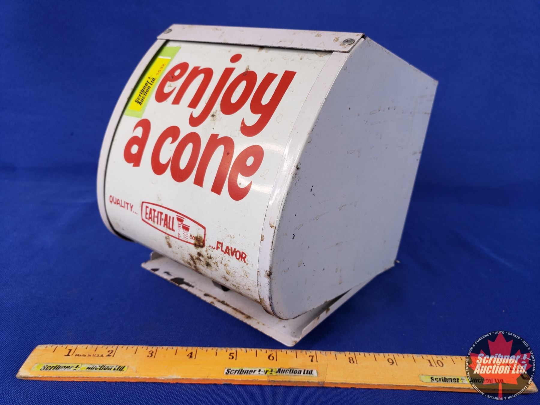 "Enjoy a Cone" Dispenser (Metal) (Curved Front) (6-1/2"H x 6-1/4"W x 8-1/4"D) (SEE PICS!)