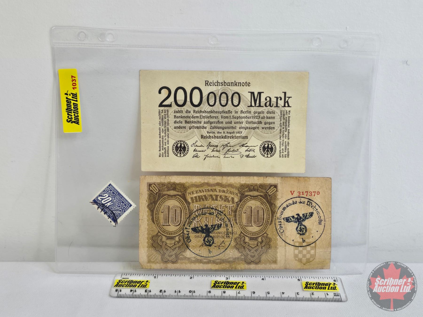 Europe Wartime Currency (2) & Postage Stamp :