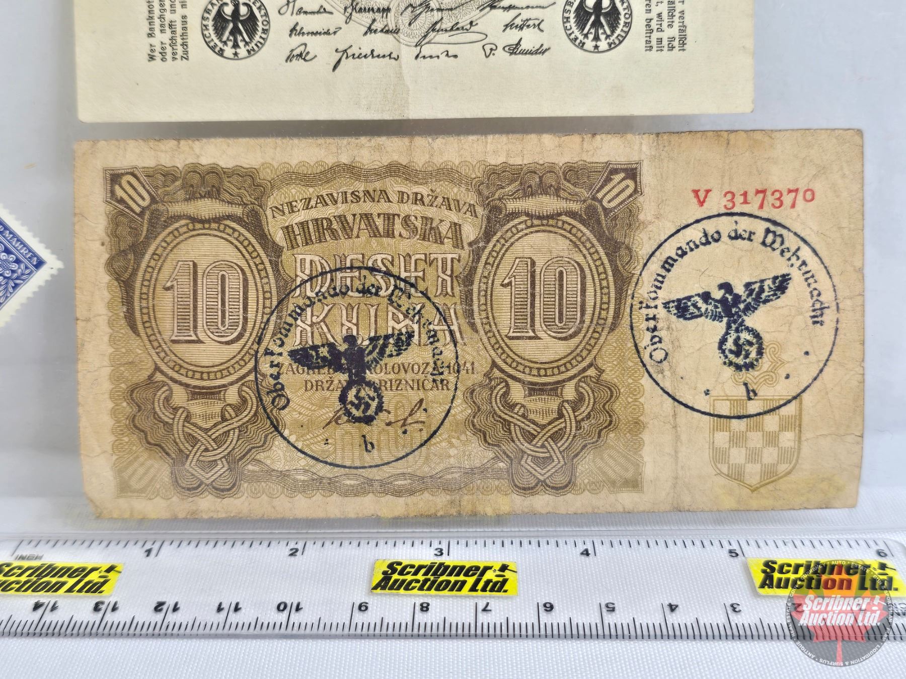 - Croatia 10 Kuna 1941 (Third Reich Stamp) with Bohemia & Moravia Postage Stamp