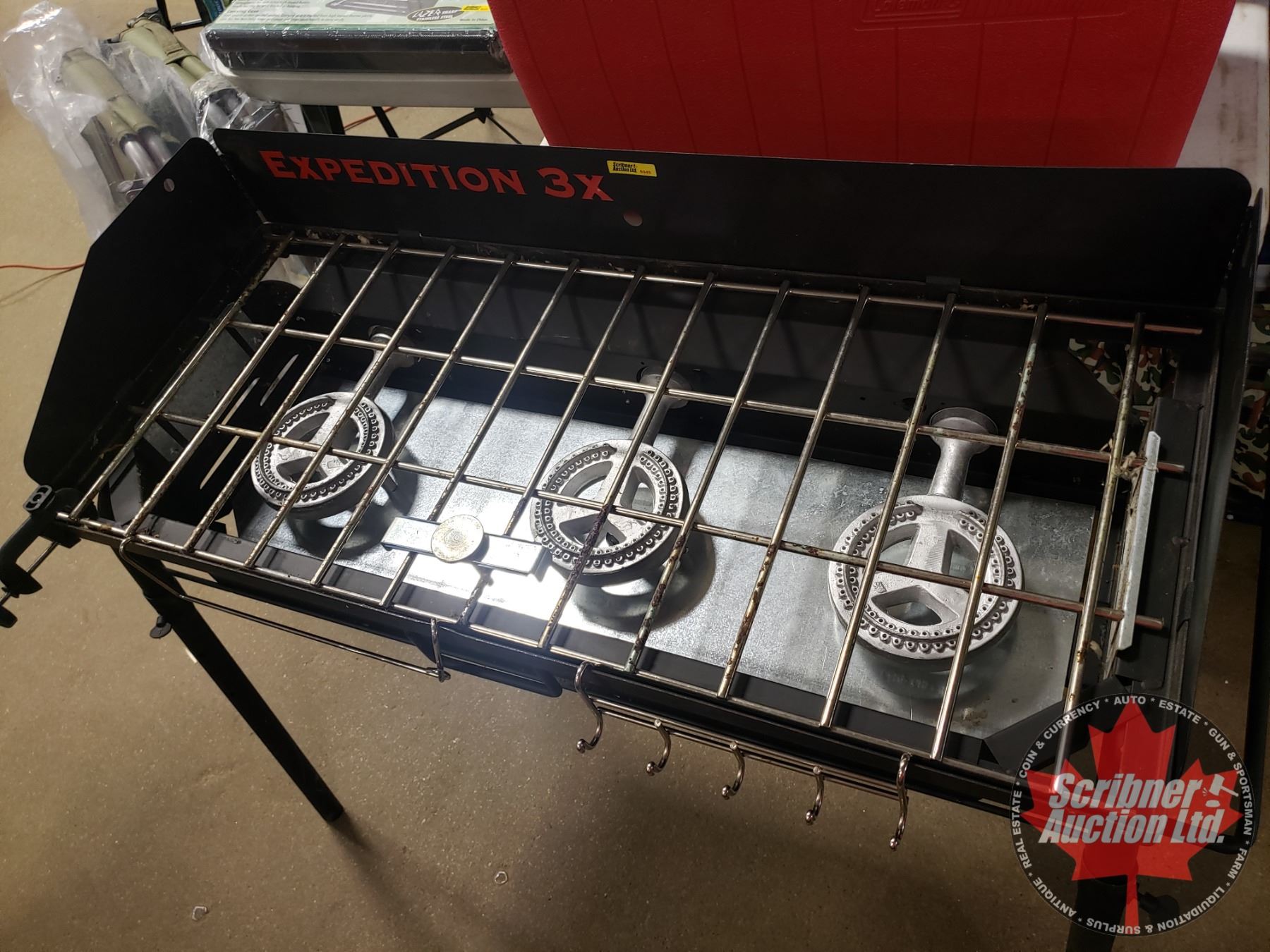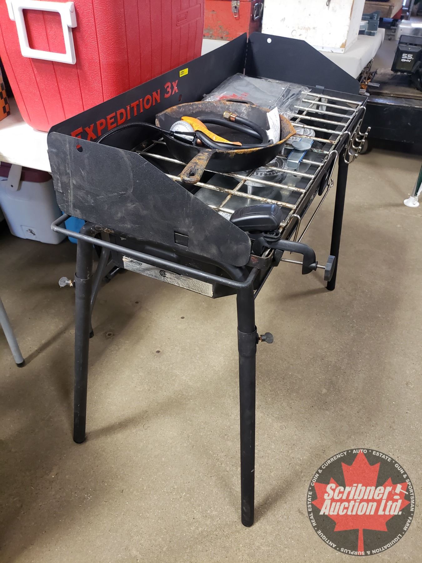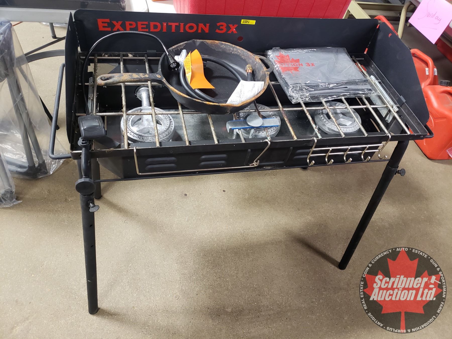 Expedition 3x Propane Shore Lunch Cook Stove with Cast Iron Frying Pan (Never Used but some rust on grill & frying pan while in storage) (36"H x 42"H x 17"D)