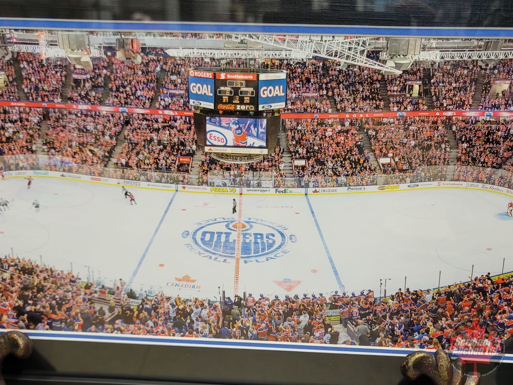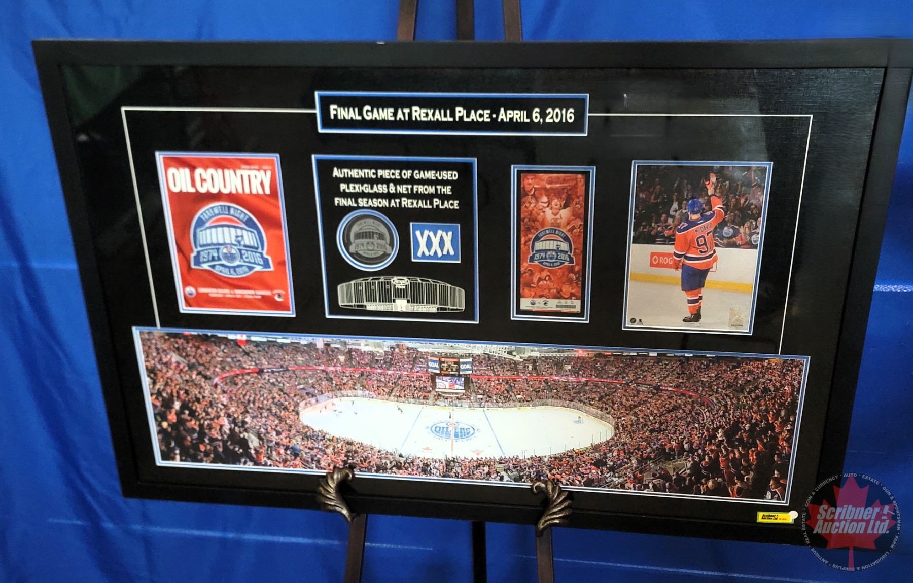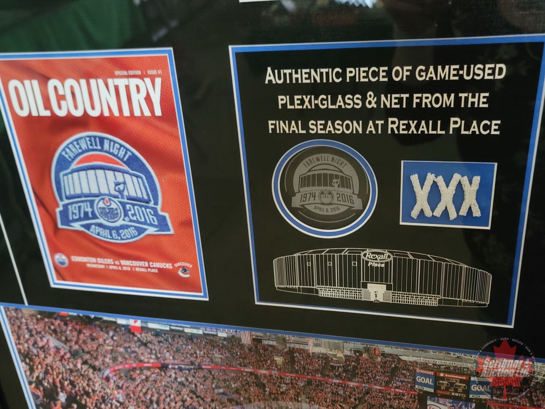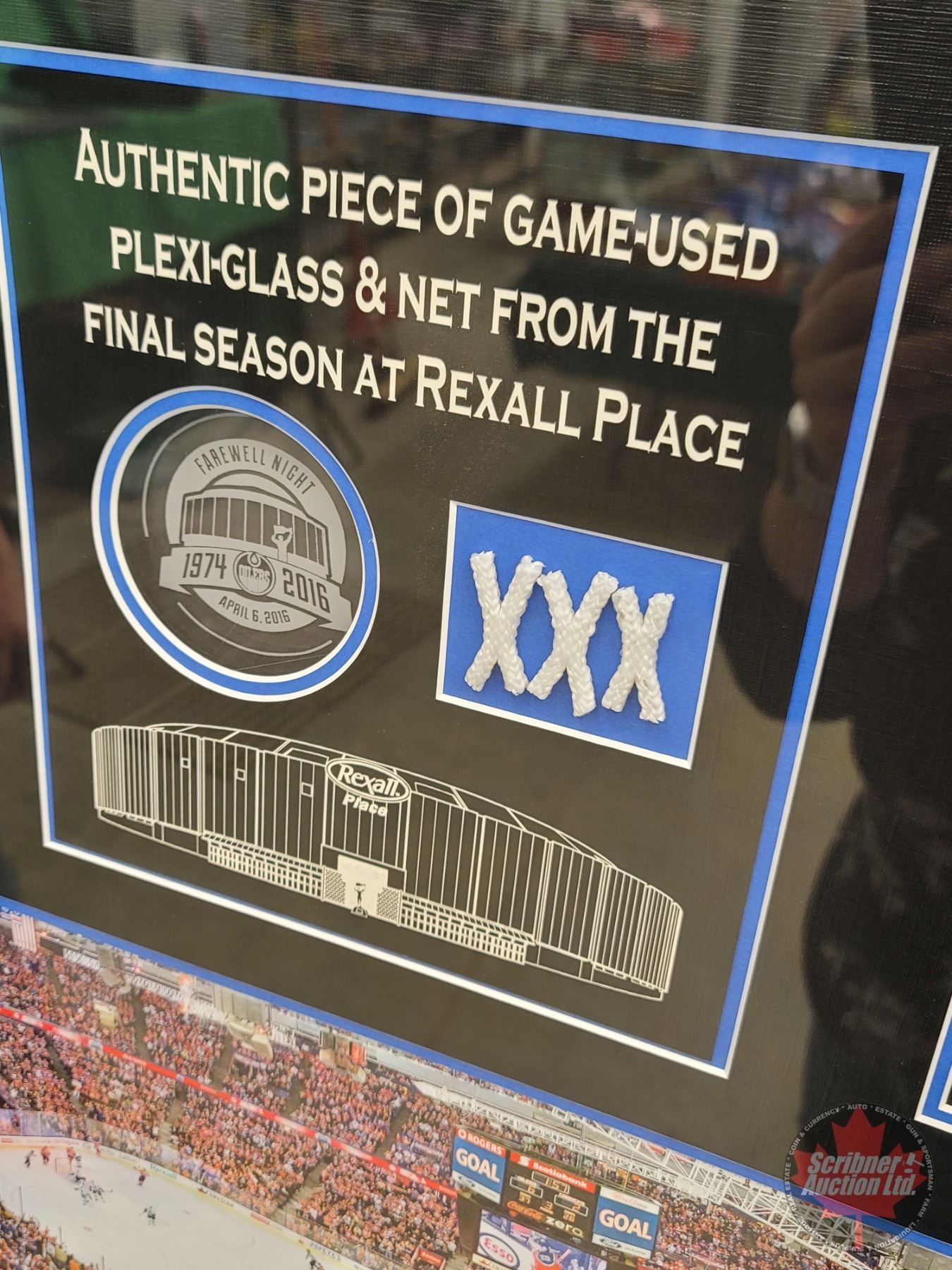 COA on Back "This Frame contains an authentic piece of game-used final-season plexi-glass & a piece of game-used net from the Edmonton Oilers final game at Rexall Place"