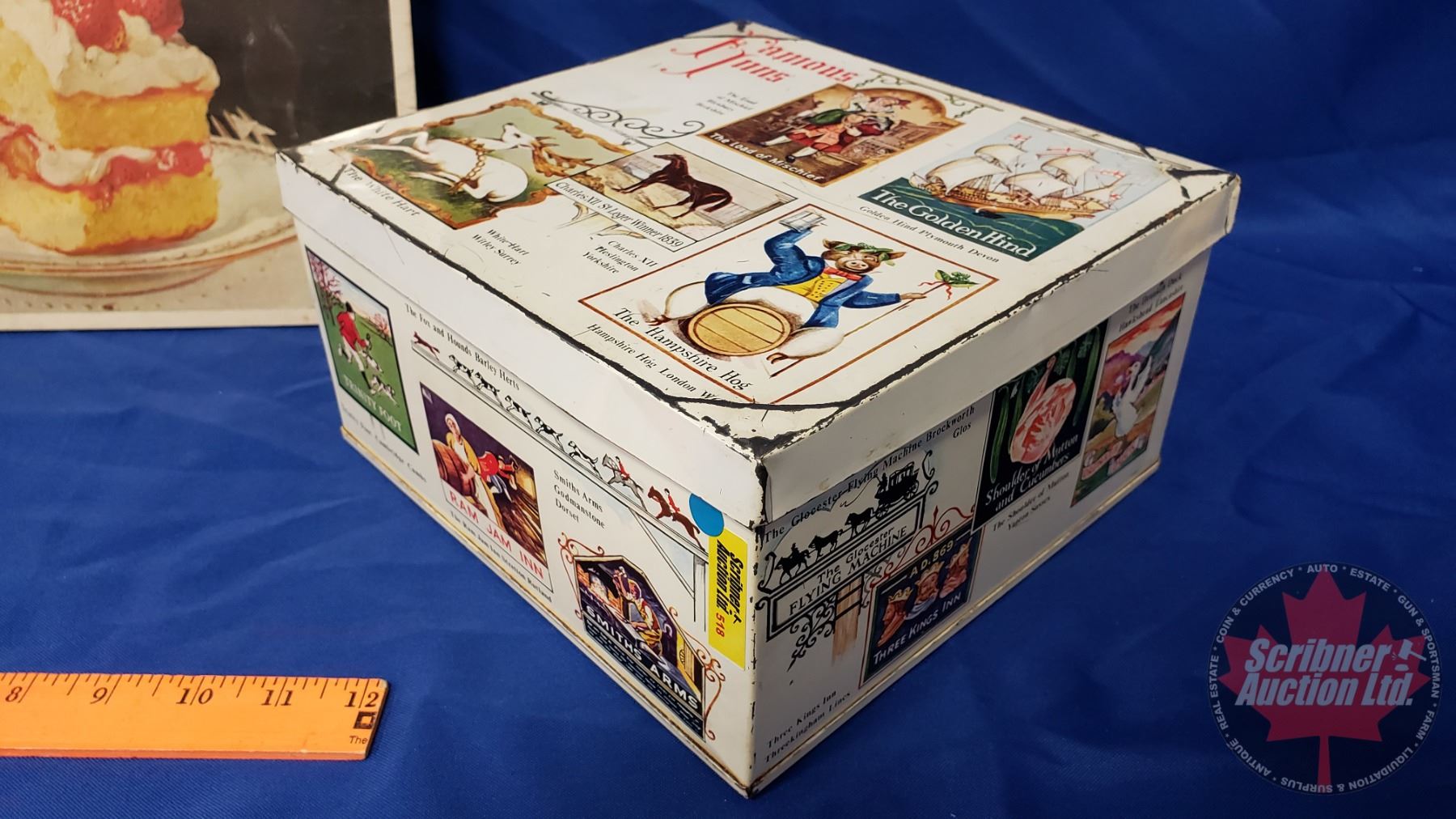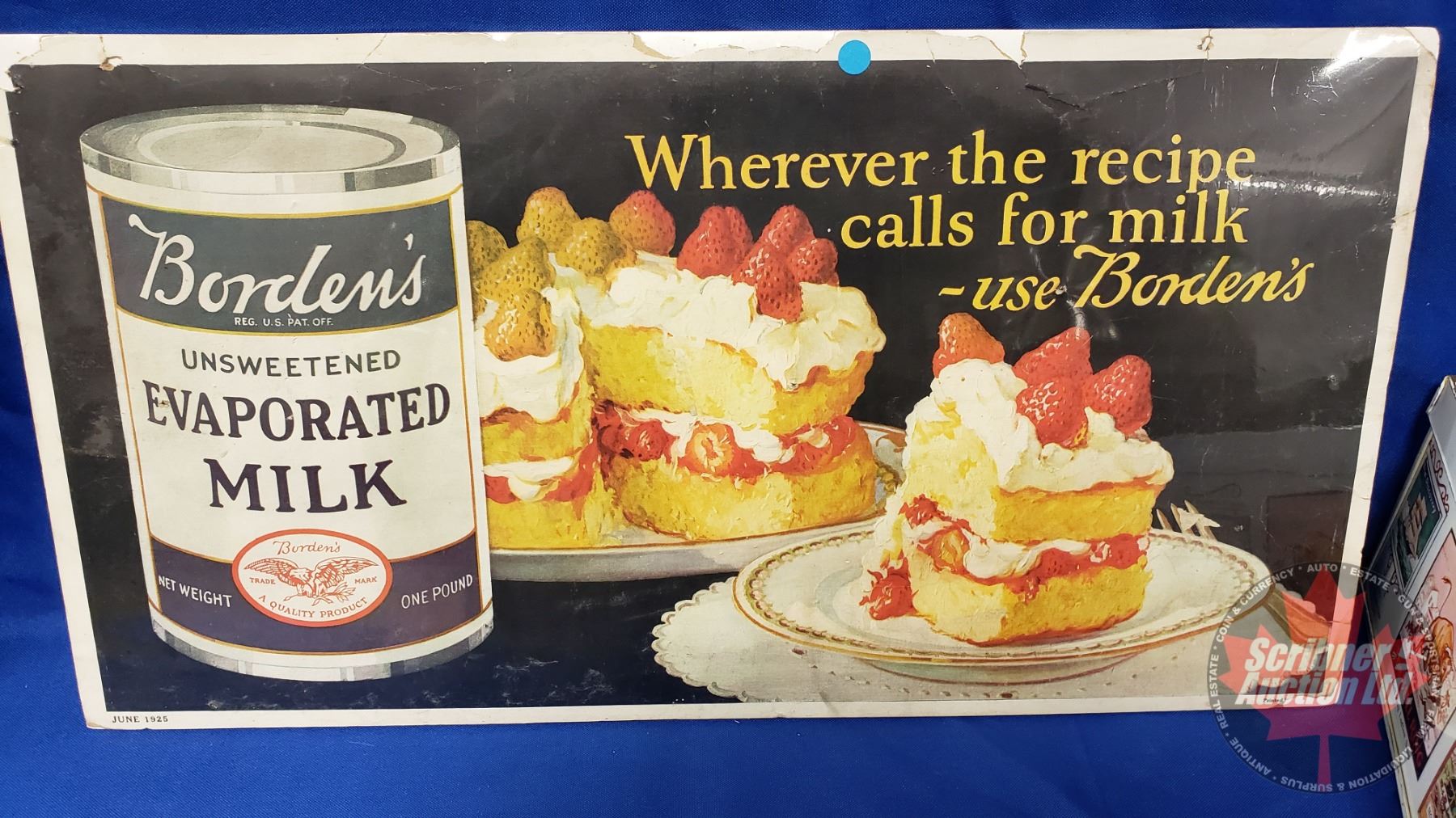 Famous Inns Biscuit Tin (5"x9"x9") & Borden's Evaporated Milk Cardboard Advertisement (11"x21") June 1925