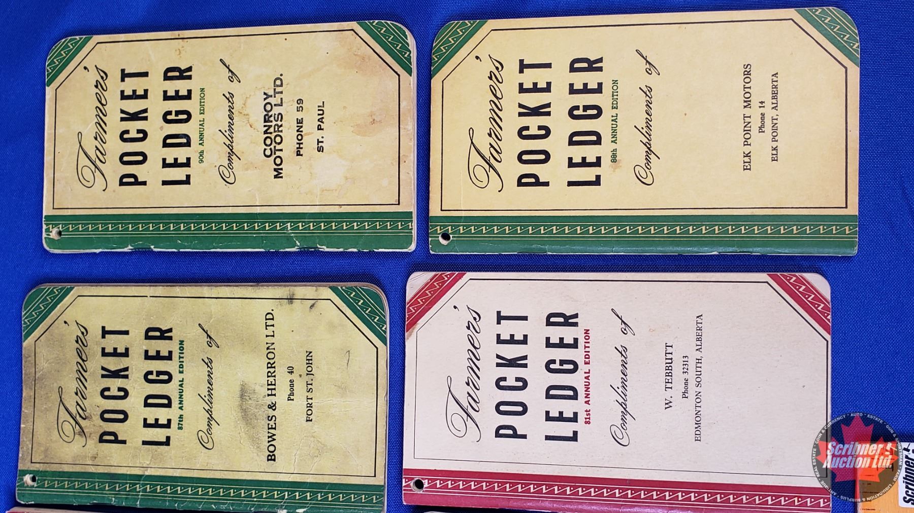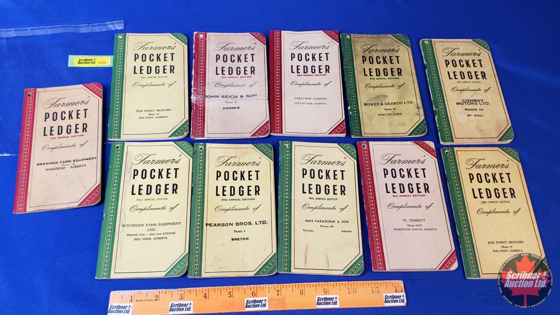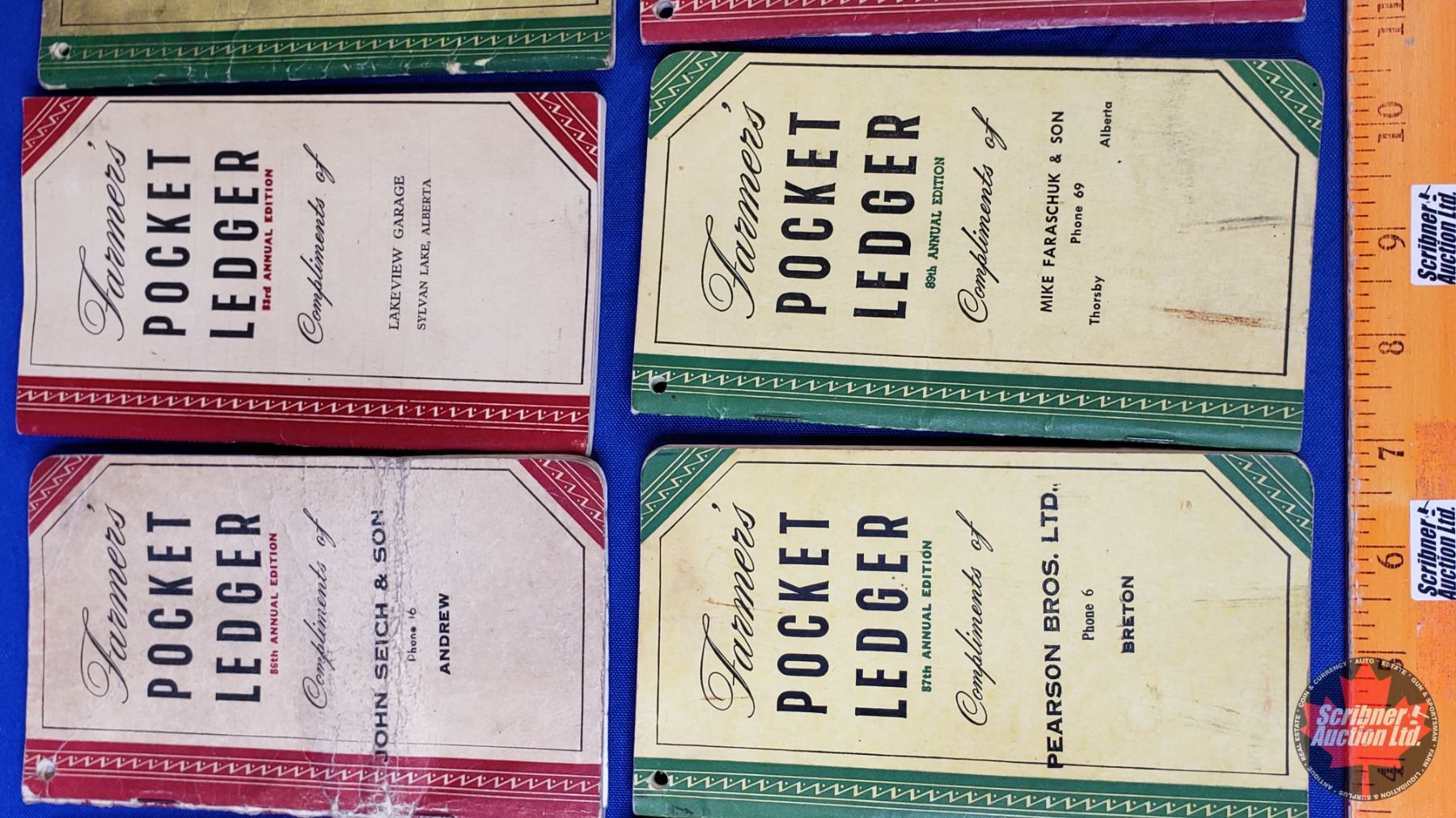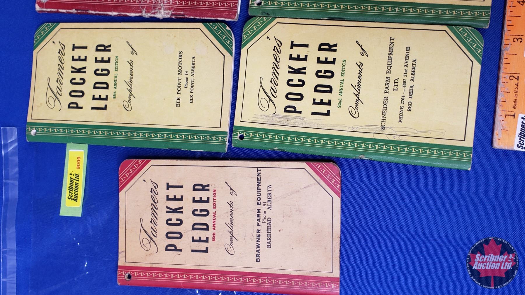 Farmer's Pocket Ledgers (11) Variety of "Compliments of" Dealers/Locations from 1940's & 1950's (SEE PICS!)