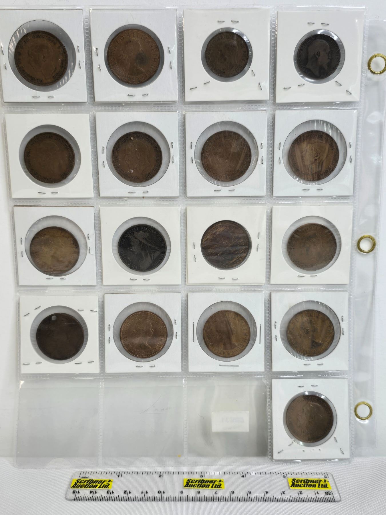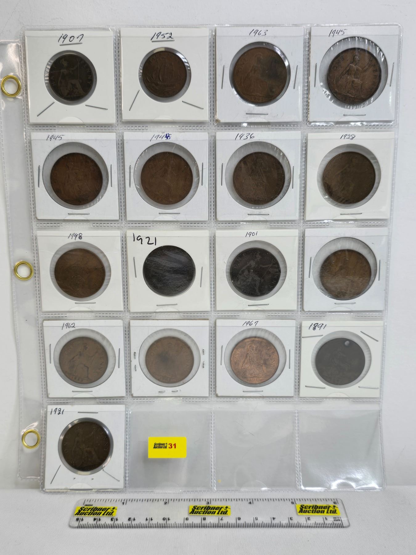Foreign ~ Britian Coins (17) : ~ Half Penny (2 ): 1907; 1952 ~ One Penny (15) : 1963; 1945; 1945; 1948; 1936; 1928; 1948; 1921; 1901; 1964; 1962; 1962; 1967; 1891 Holed; 1921 (SEE PICS!) (Listing & Descriptions are a GUIDE ONLY and are subject to changes, errors, additions or deletions. Please use the provided pictures to satisfy yourself to the Condition and/or Grades. Please Read & Understand All Terms & Conditions for this Auction Sale.)