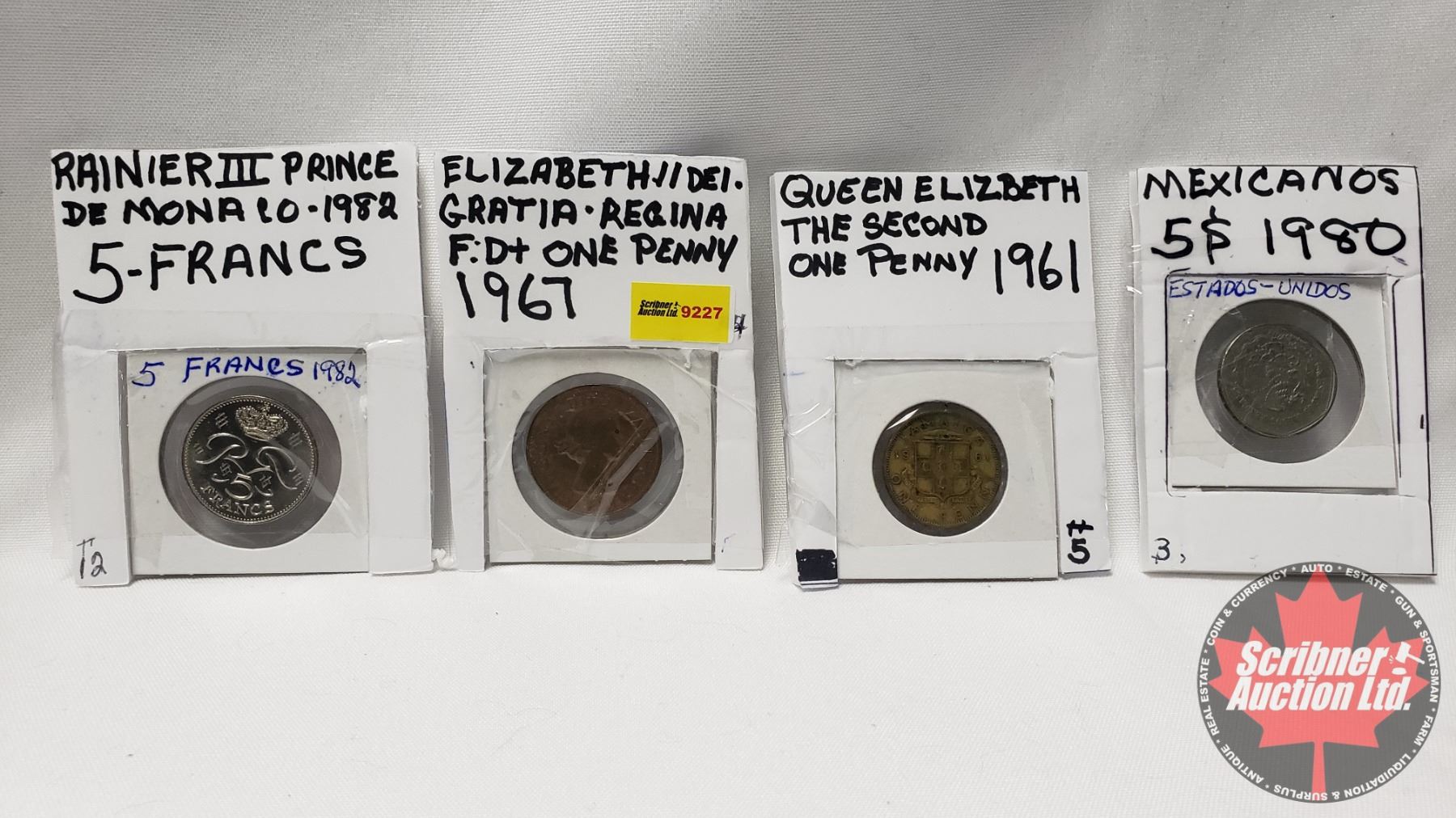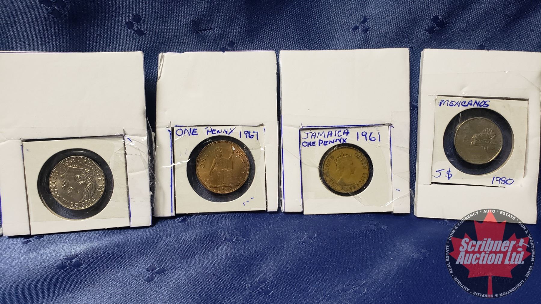 Foreign Coins (4): GB 1967 One Penny; Jamaica One Penny 1961; Mexicanos 5 1980; 5 Francs 1982