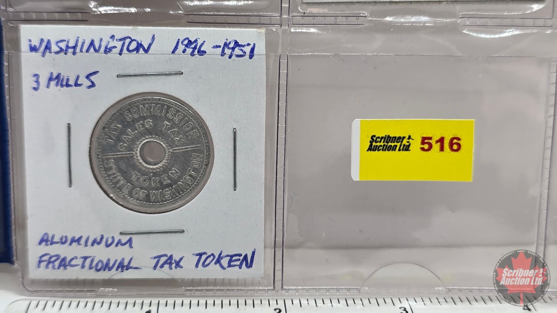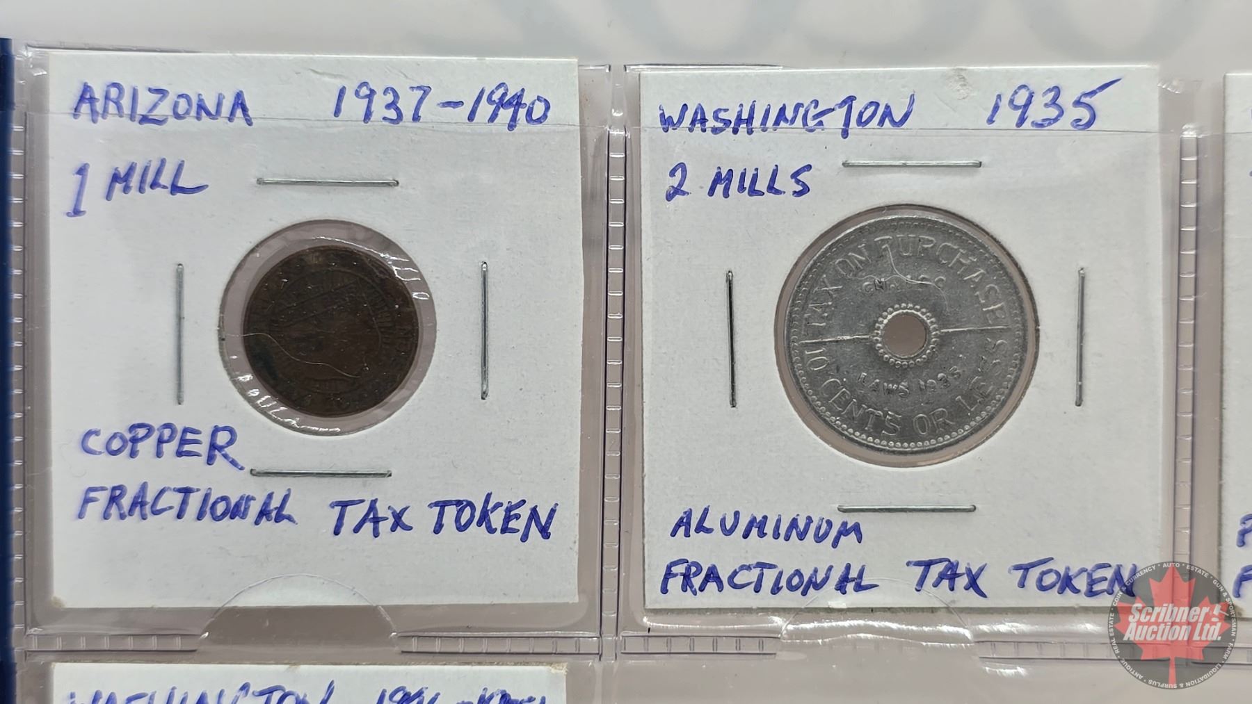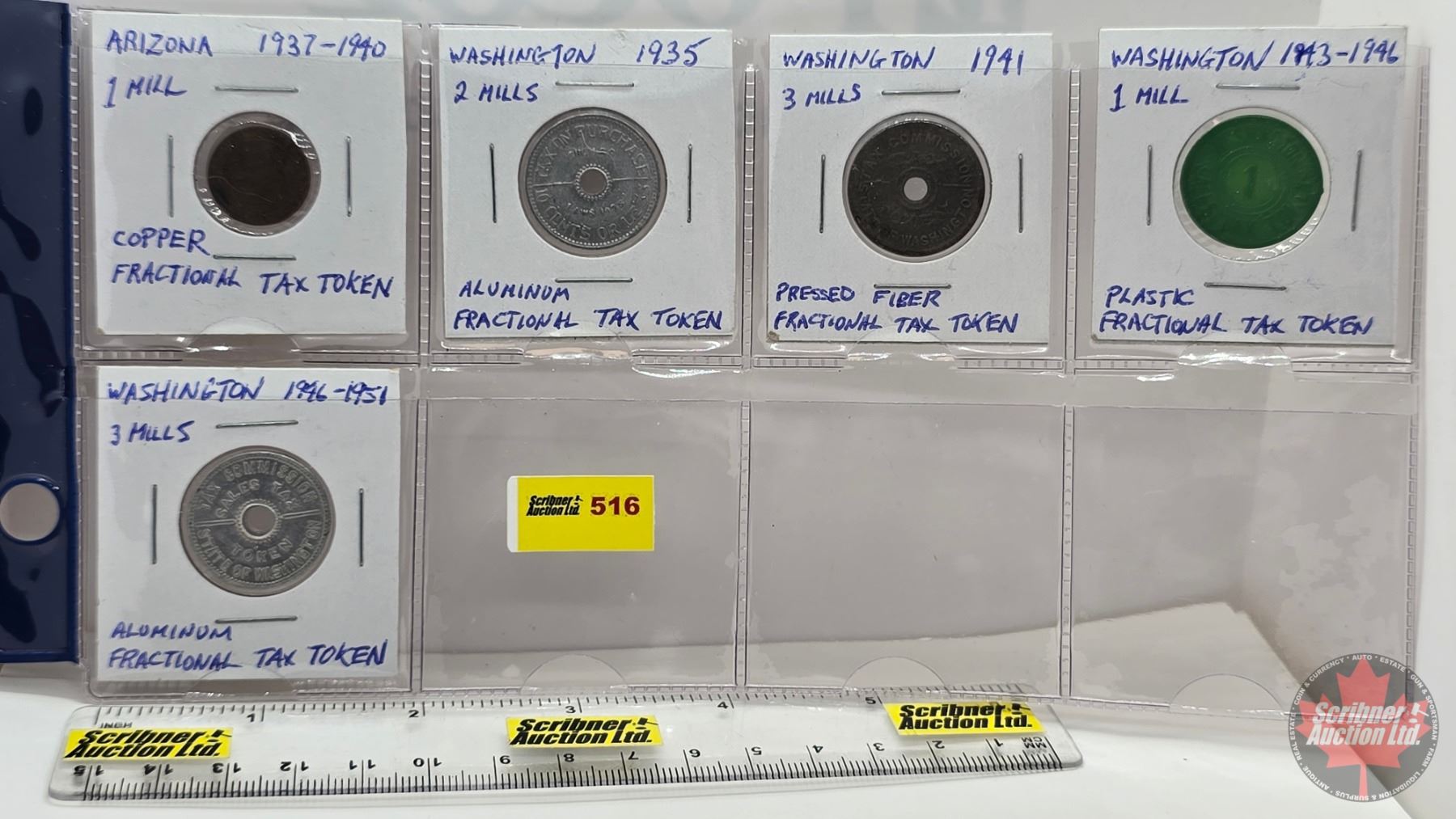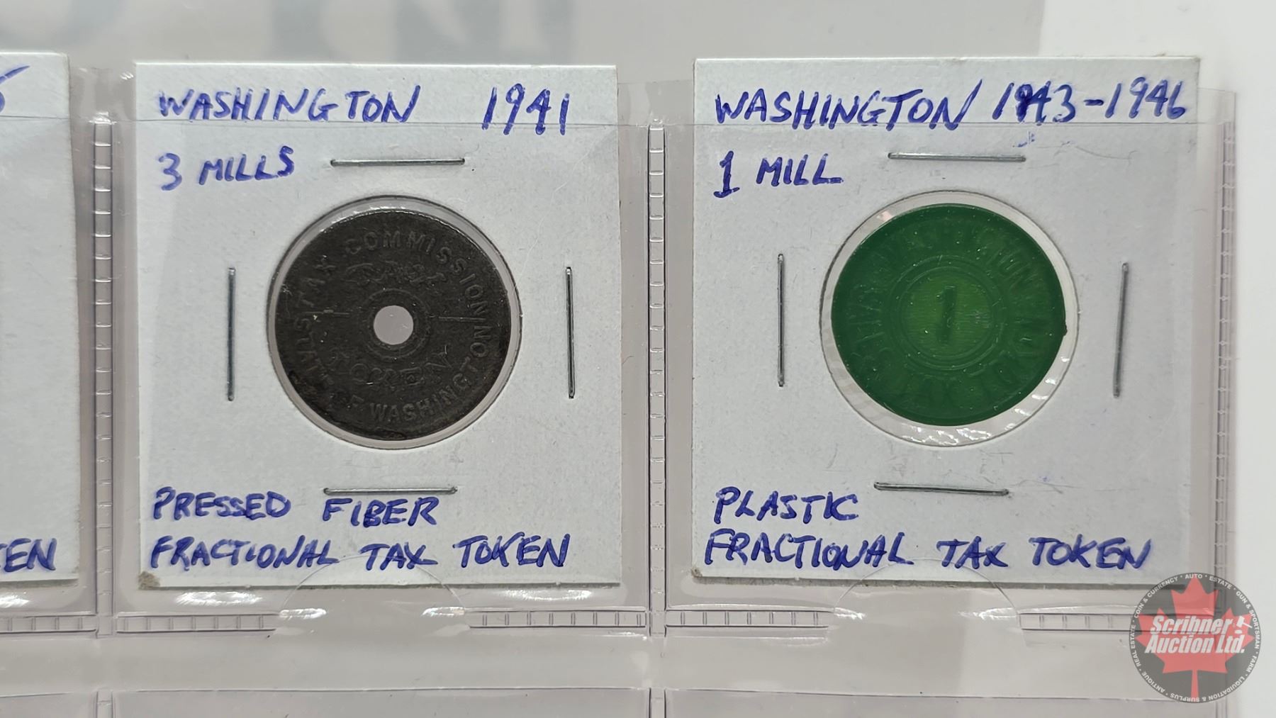 Fractional Tax Tokens (5): Arizona 1937-1940; Washington 1935; Washington 1941; Washington 1943-1946; Washington 1946-1951 (SEE PICS!) (Listing & Descriptions are a GUIDE ONLY and are subject to changes, errors, additions or deletions. Please use the provided pictures to satisfy yourself to the Condition and/or Grades. Please Read & Understand All Terms & Conditions for this Auction Sale.)