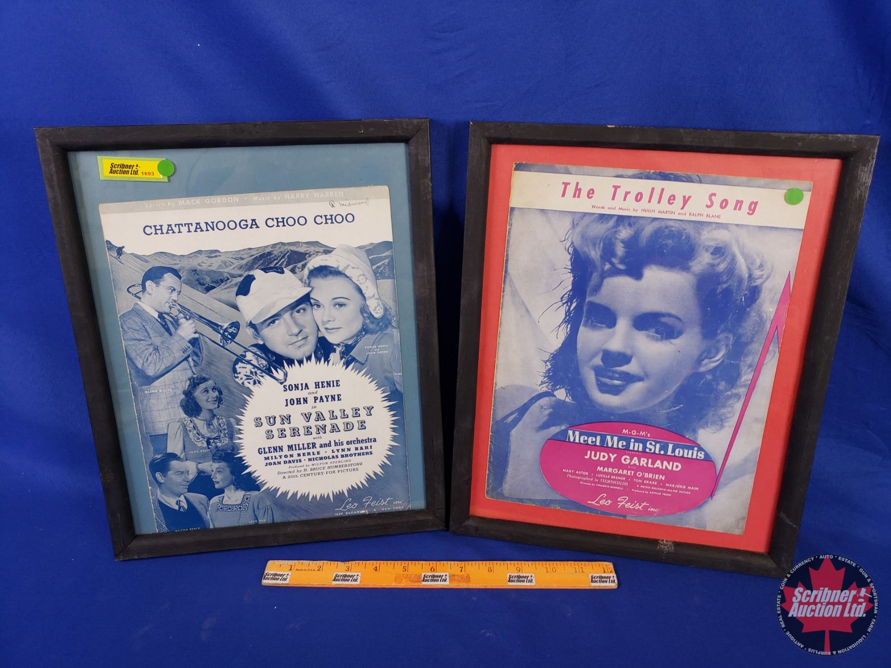 Framed Music Book Covers (2): "Chattanooga Choo Choo" & "The Trolley Song" (15"H x 12"W) (SEE PICS!)