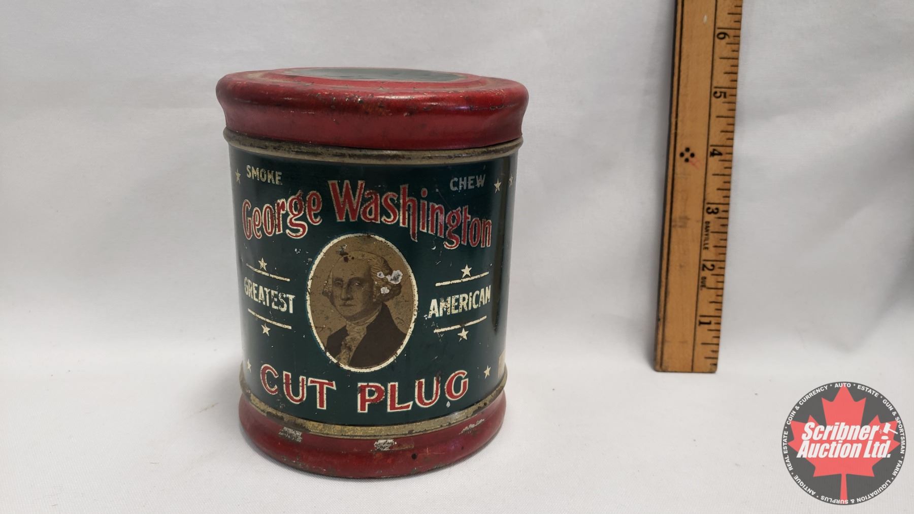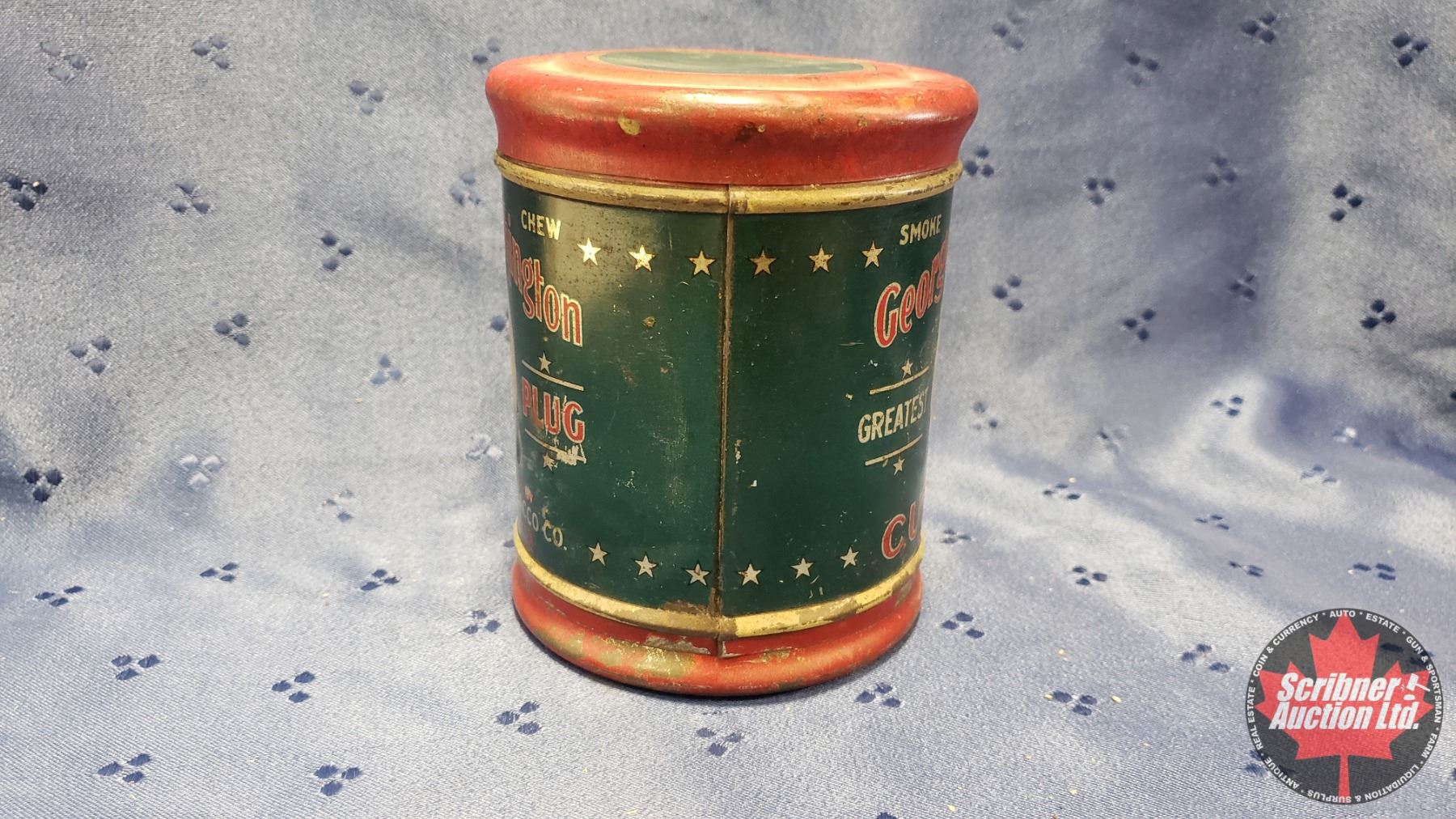 George Washington Cut Plug Smoke Chew Canister Tin "R.J. Reynolds Tobacco Co." (5" x 4")