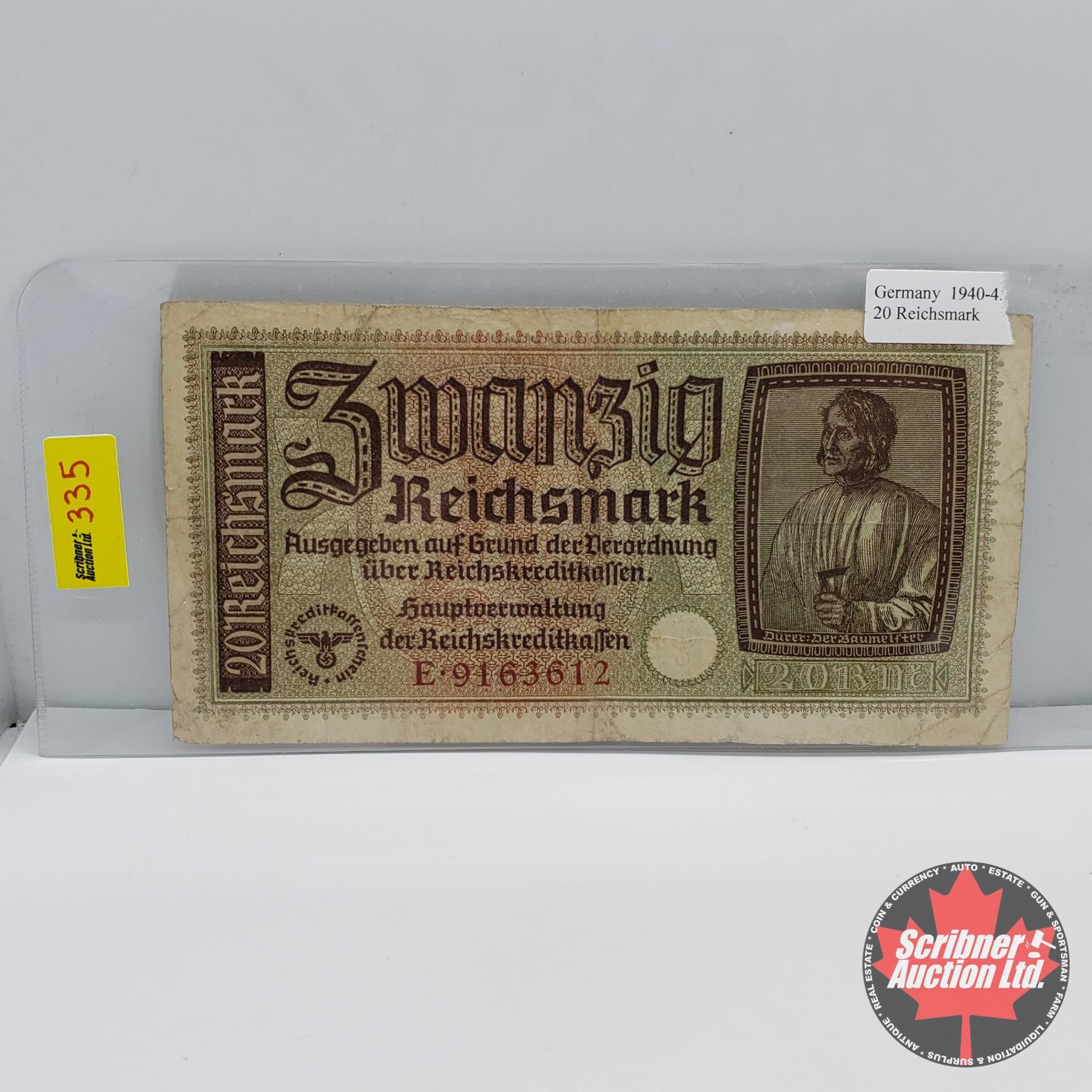 Germany 20 Reichsmark 1940-45 : S/N#E9163612