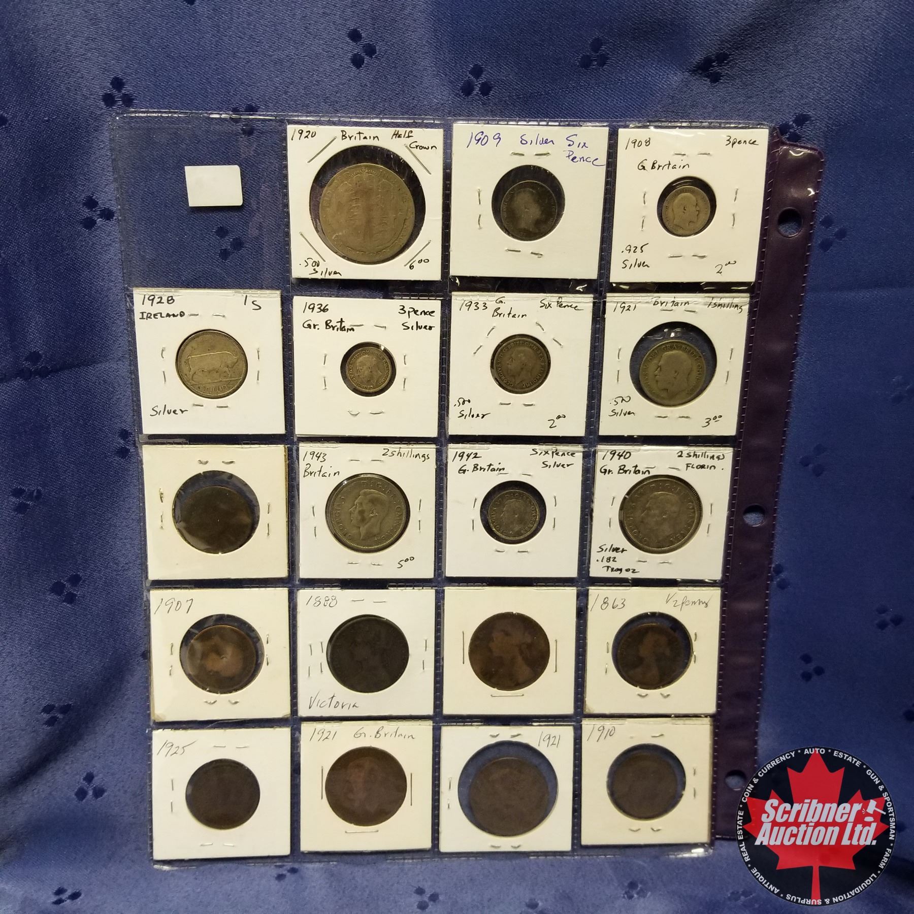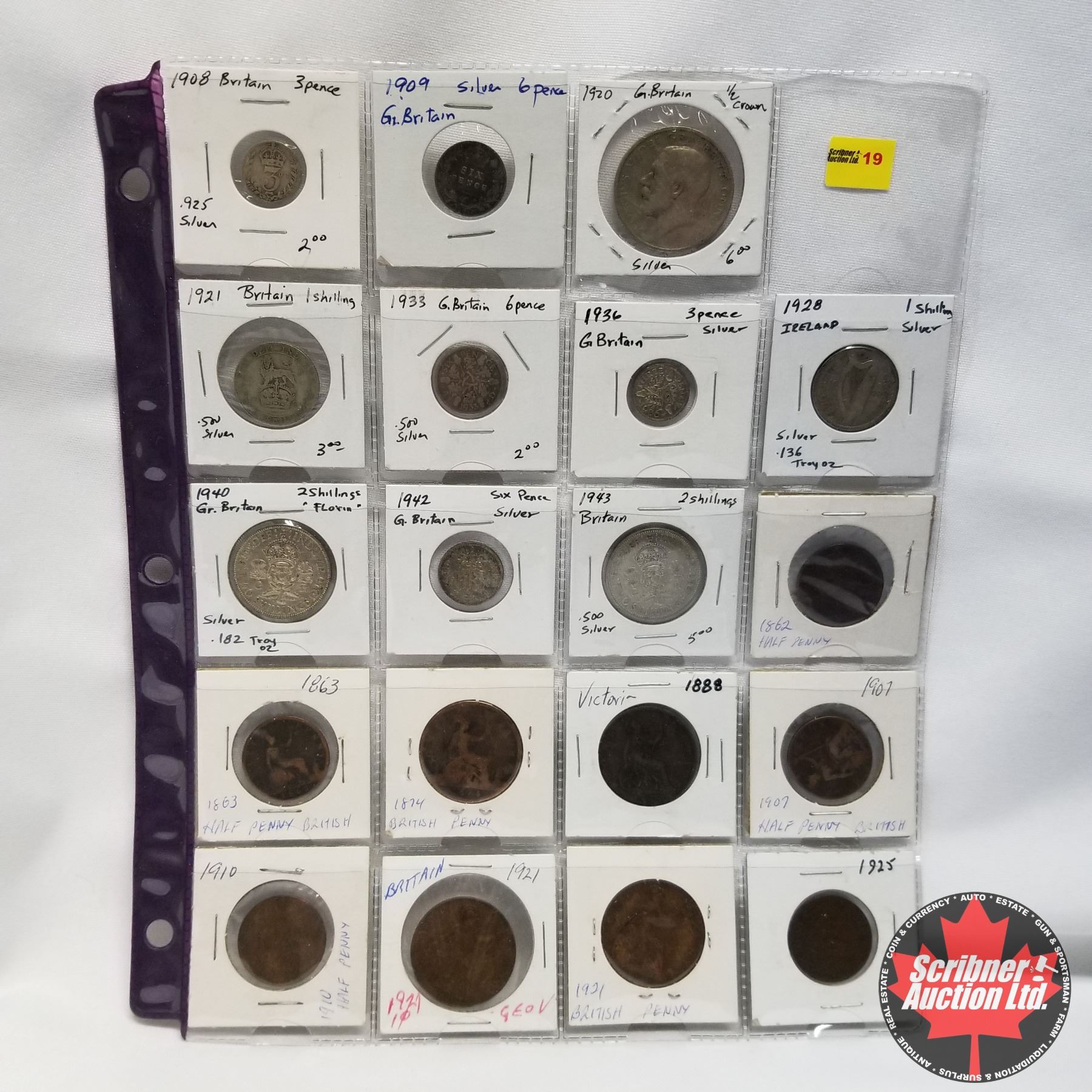 Great Britain - 19 Coins: Assorted years 1862-1943, 10 Silver issues, 10 Copper/Brass