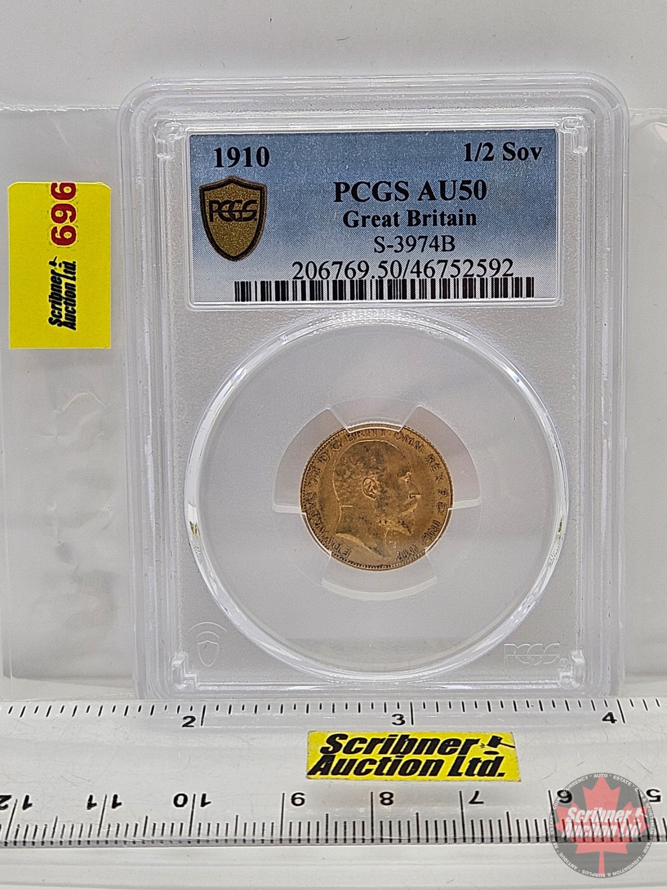 Great Britain 1910 Half Sovereign (PCGS Cert : AU50)