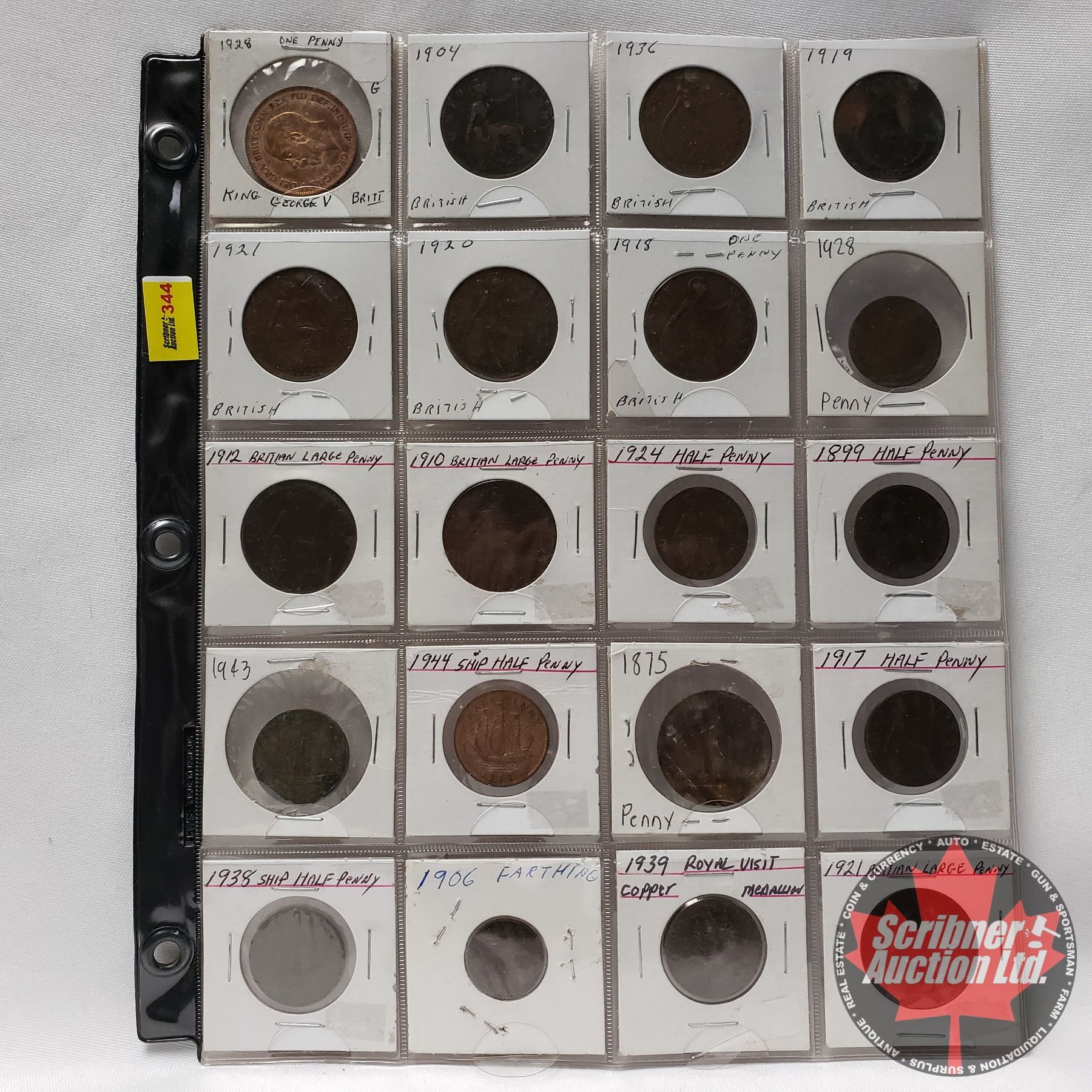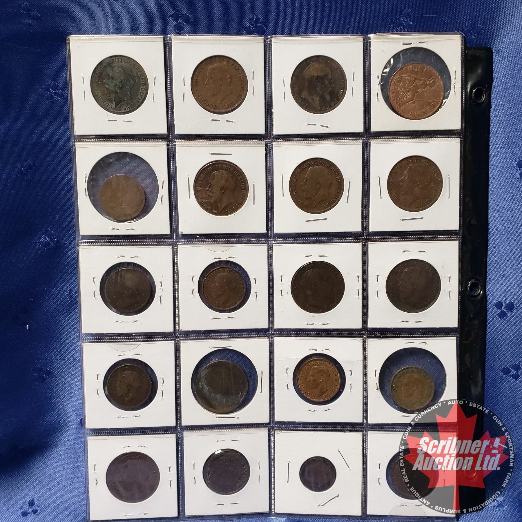 Great Britain Copper Coins/Medallions - Sheet of 20 (1800's & 1900's) (See Pics for Years / Varieties)