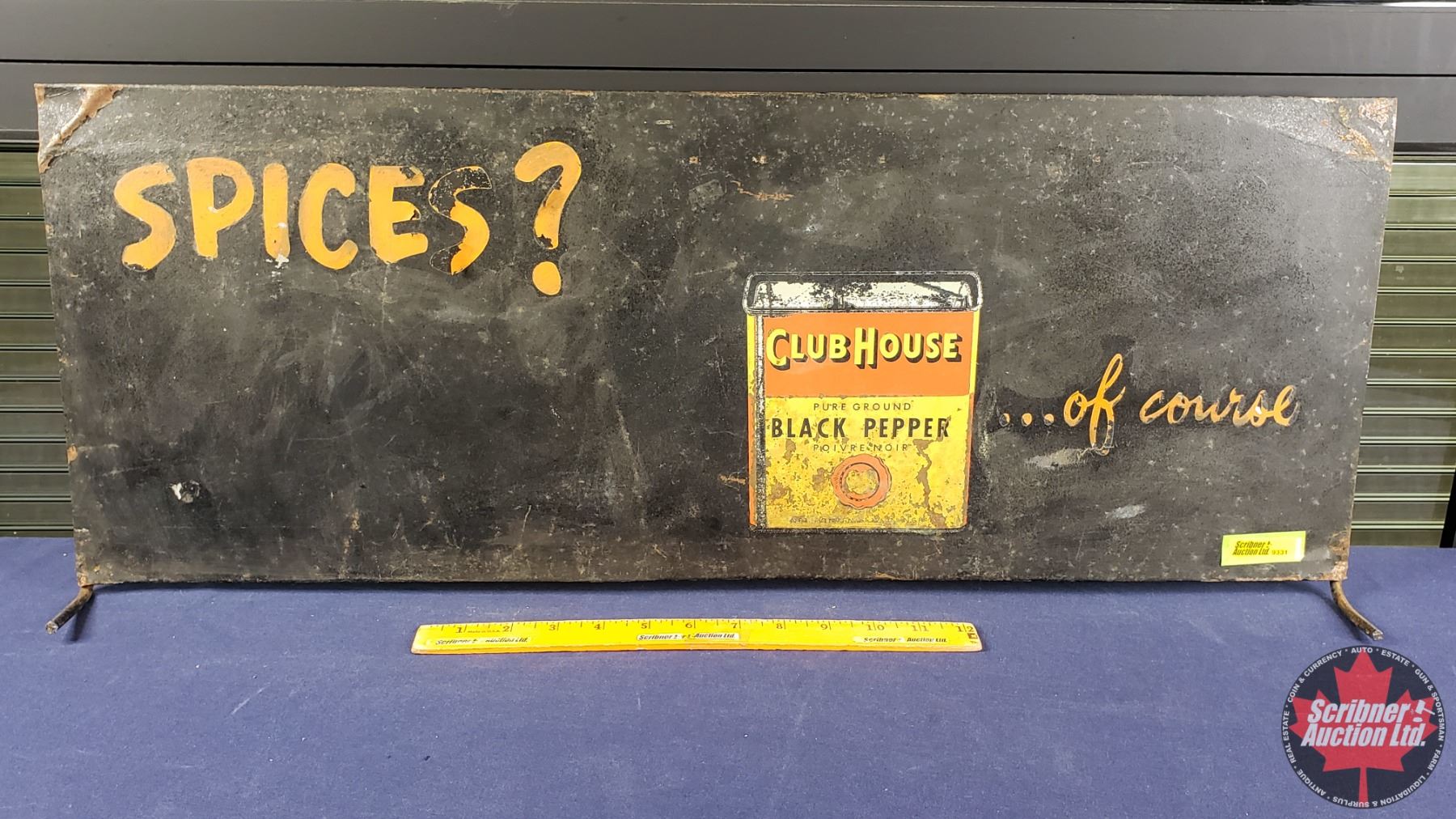 Grocery Store Display Rack Topper "CLUBHOUSE SPICES" (Metal) (11-1/2"H x 29-1/4"W) (SEE PICS!)