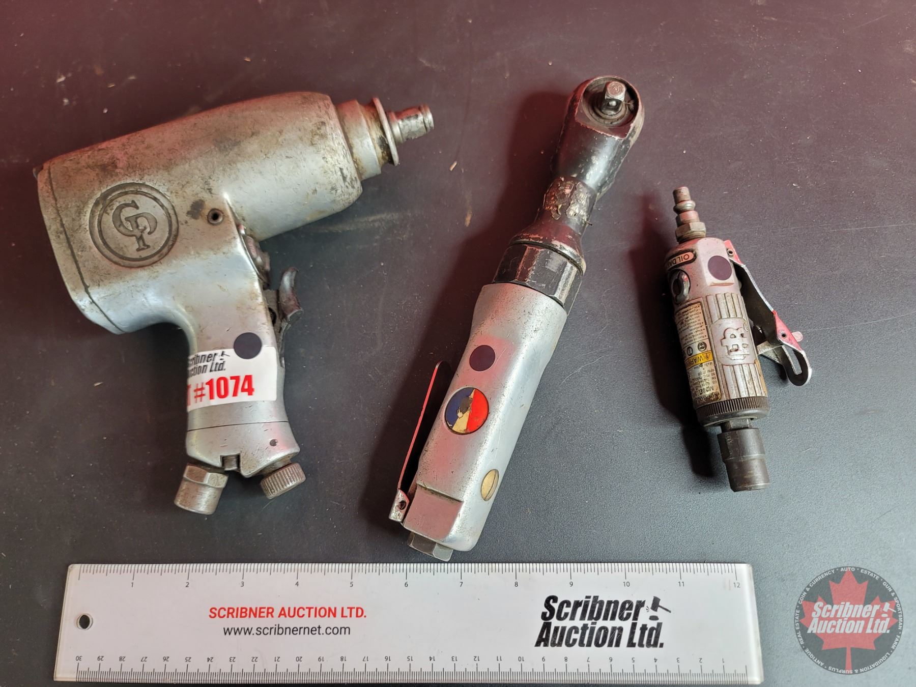 Grouping (3): 1/2" Drive Impact ; 3/8" Drive Air Ratchet; 1/4" Die Grinder