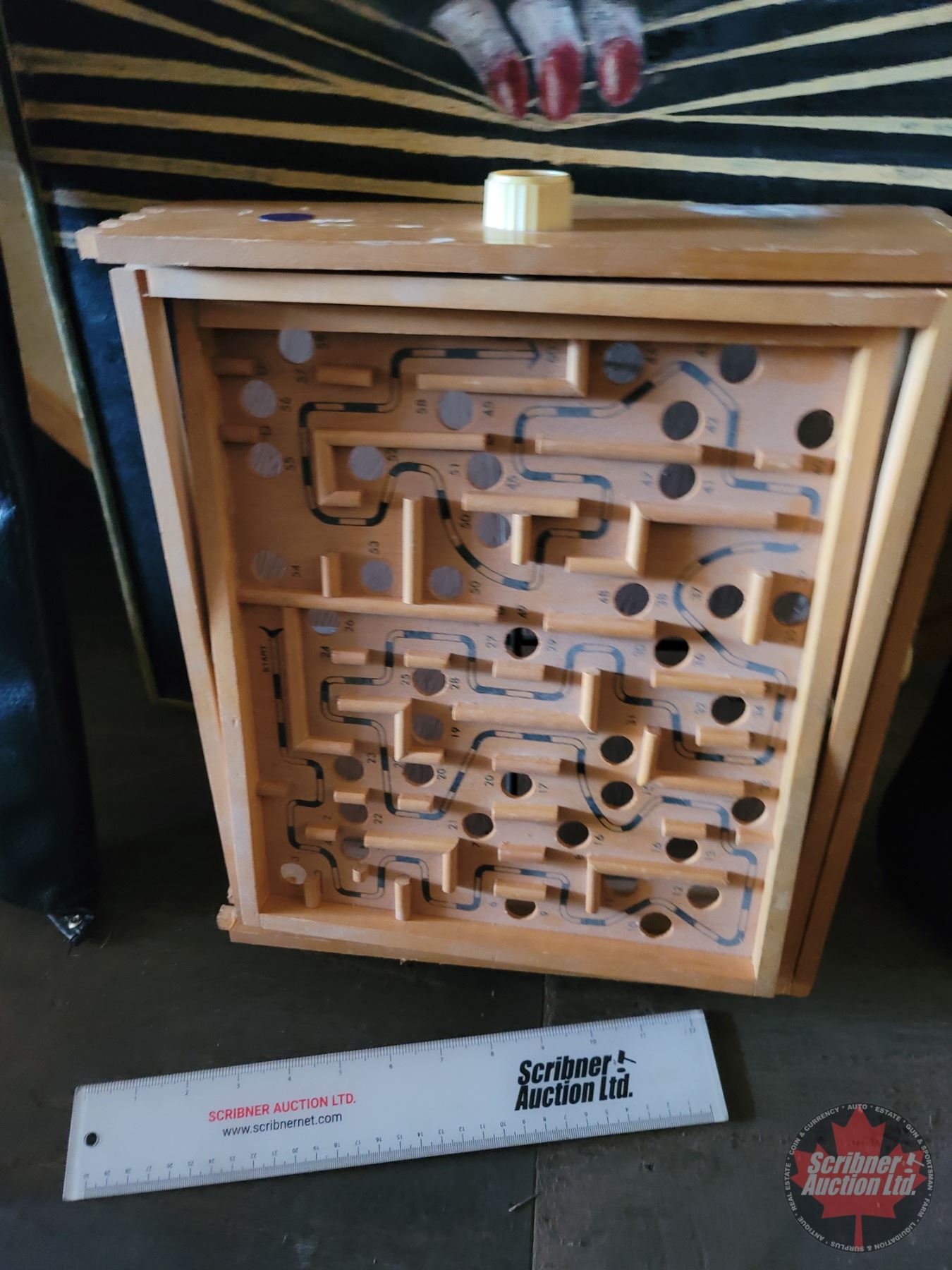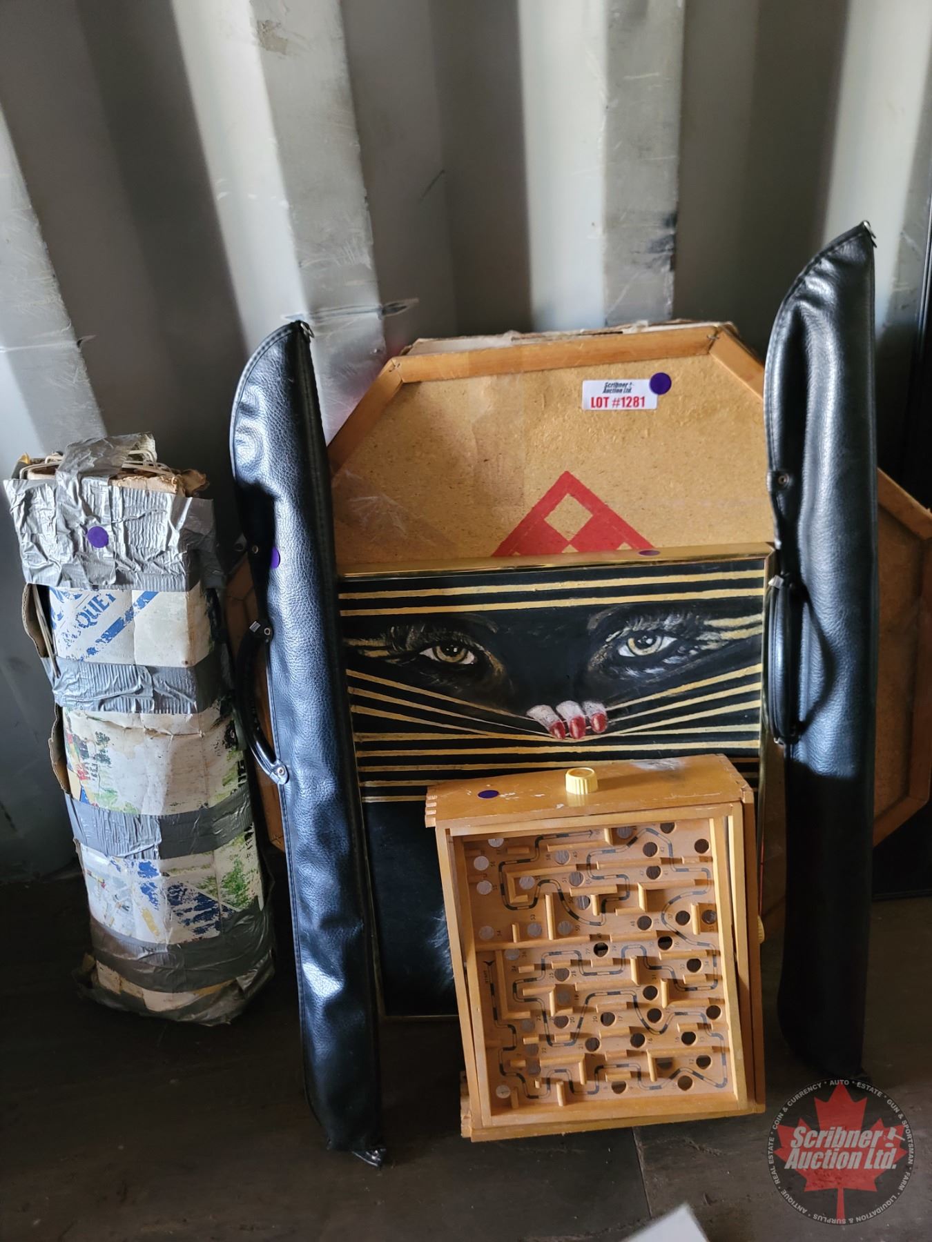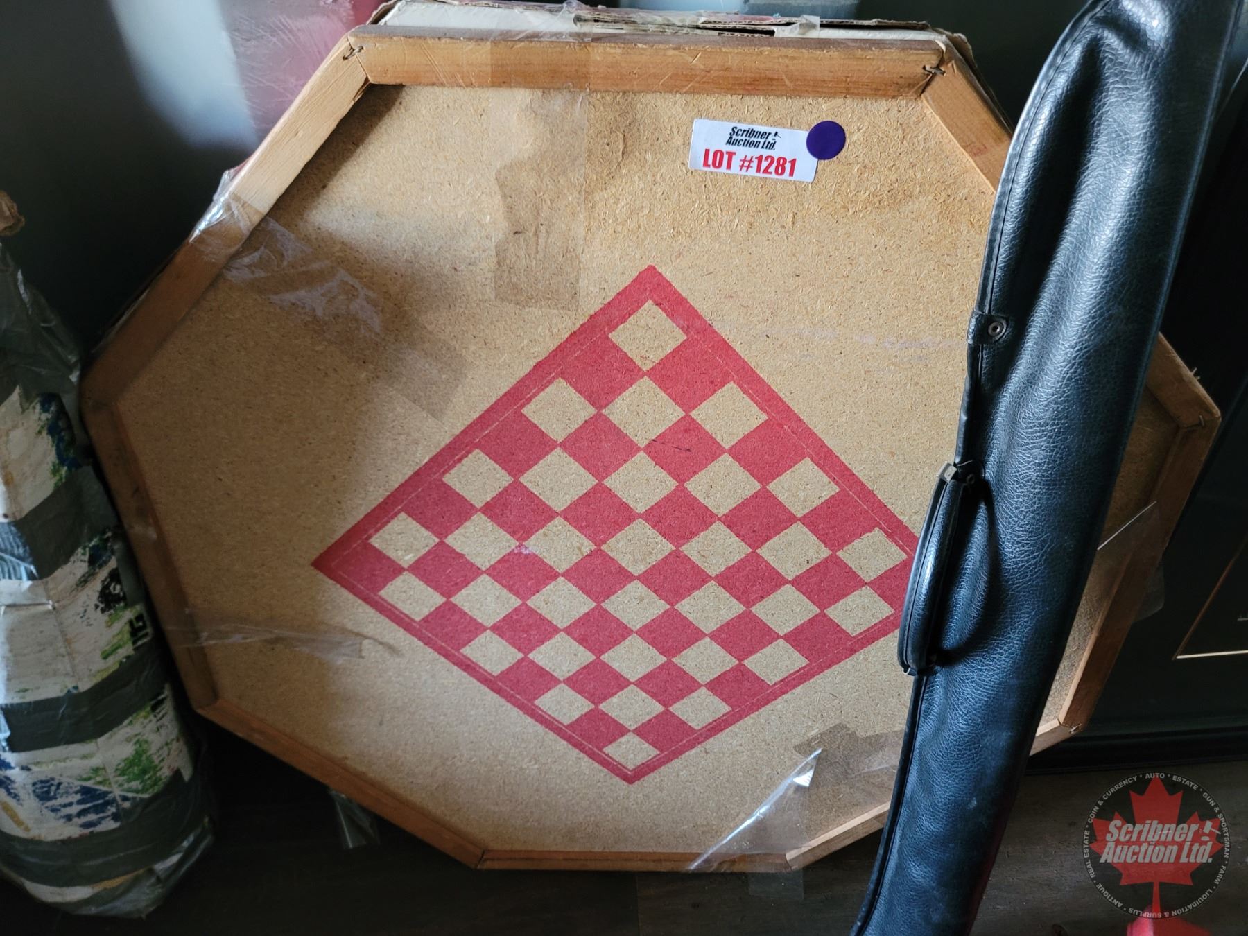 Grouping ~ Games : Crokinole Board; Checkers; Pool Cues; Croquet & Marble Game