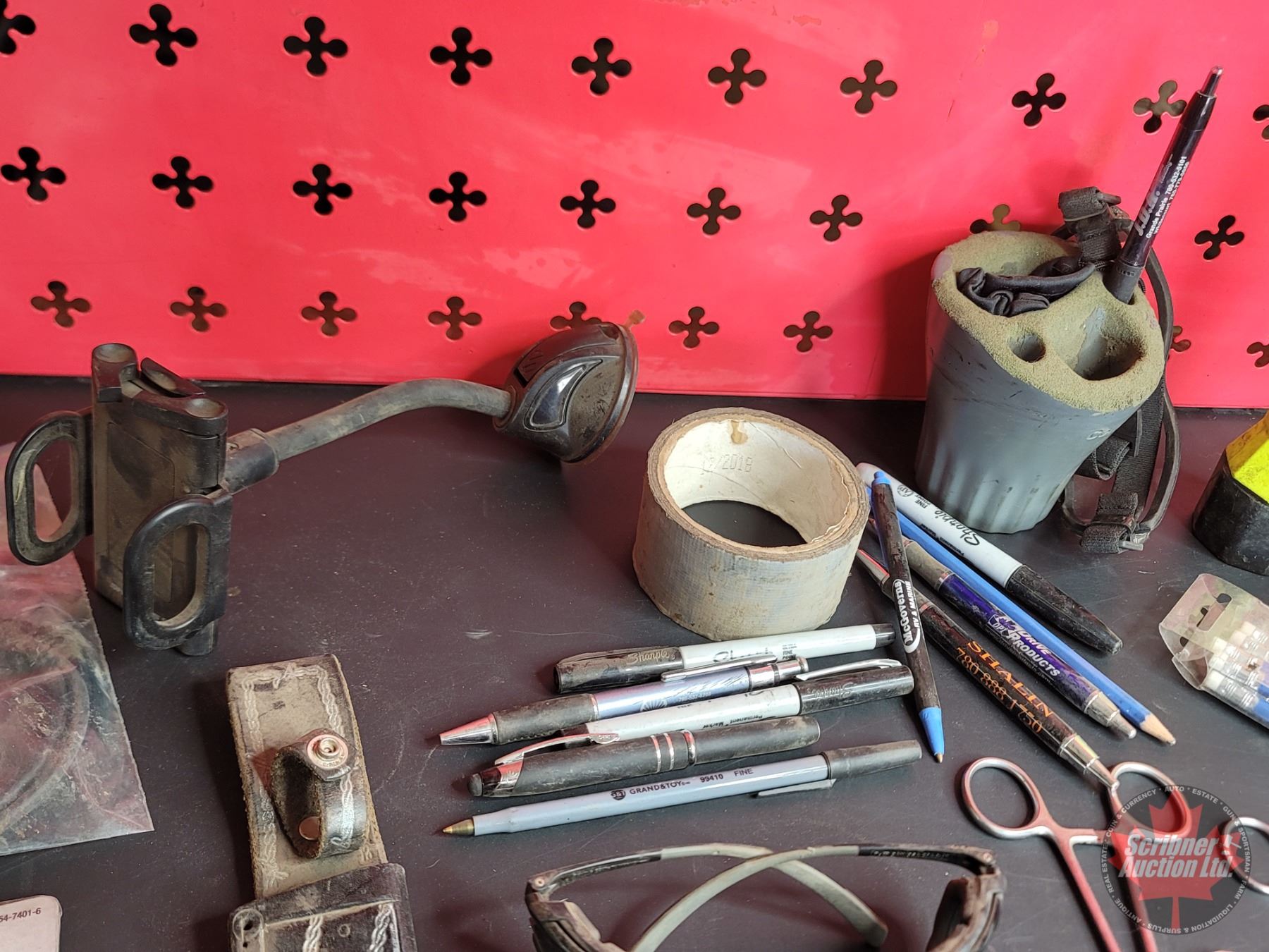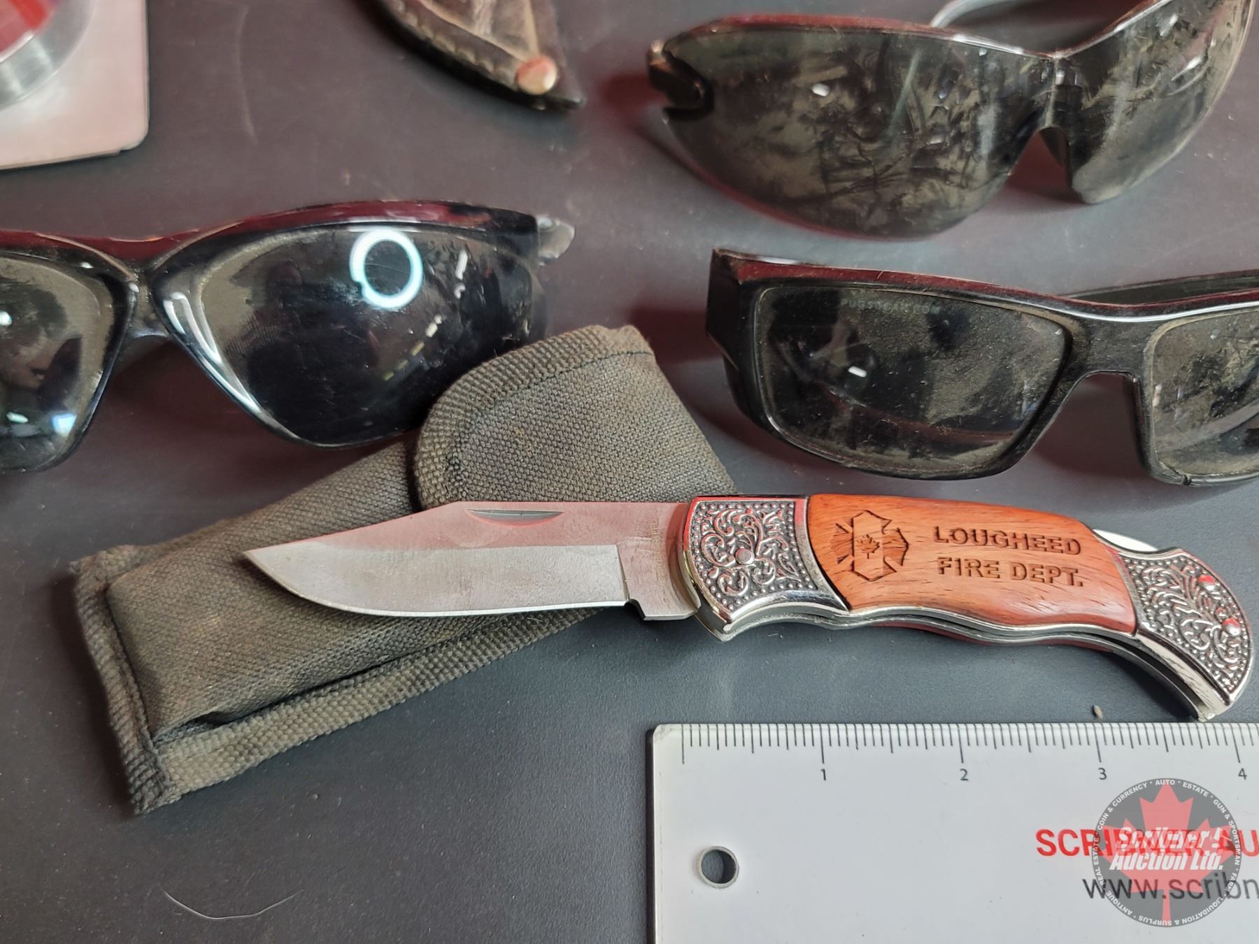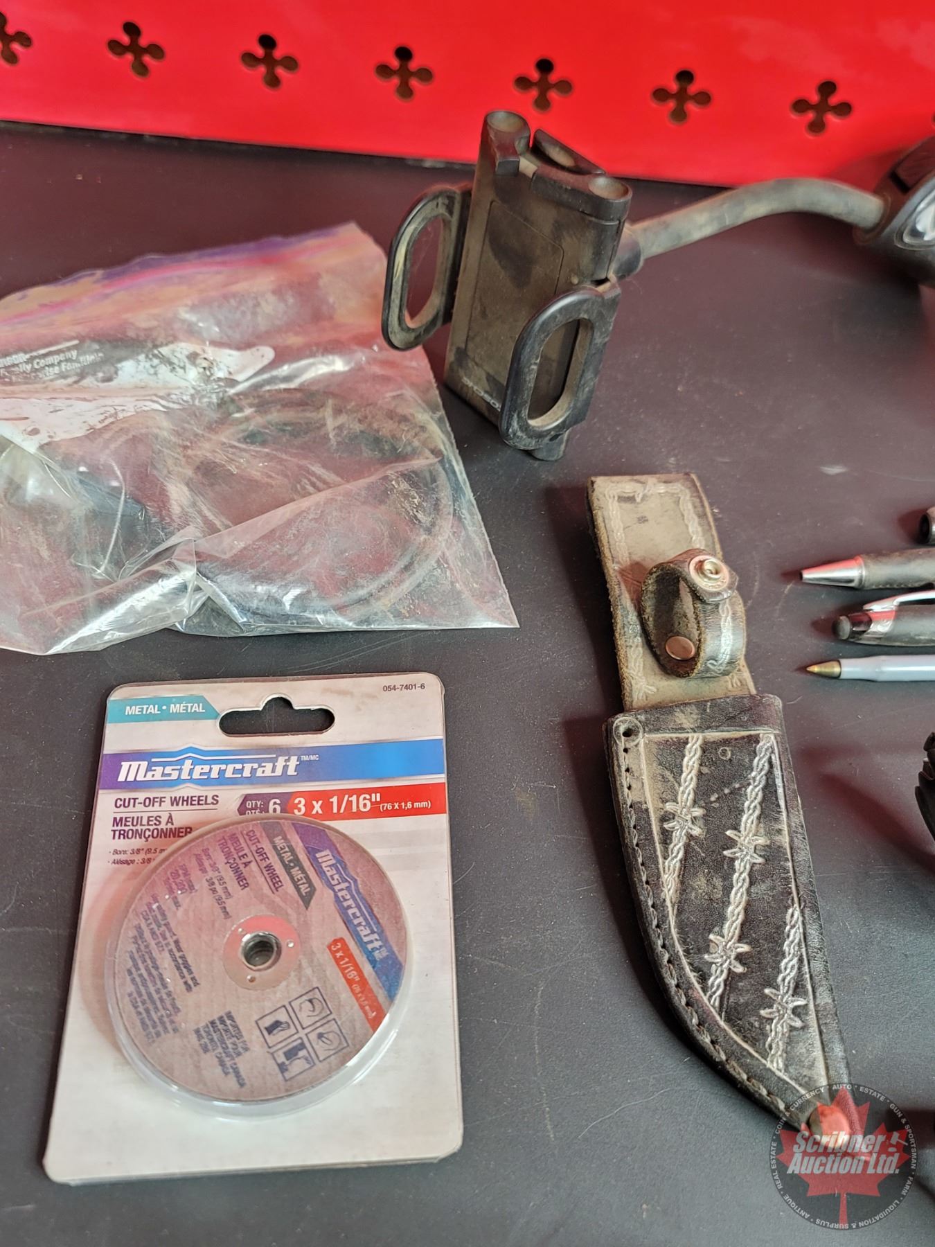 Grouping: Safety Glasses; Forceps; Pencils; Lock Blade Knife; Cut Off Wheels; etc