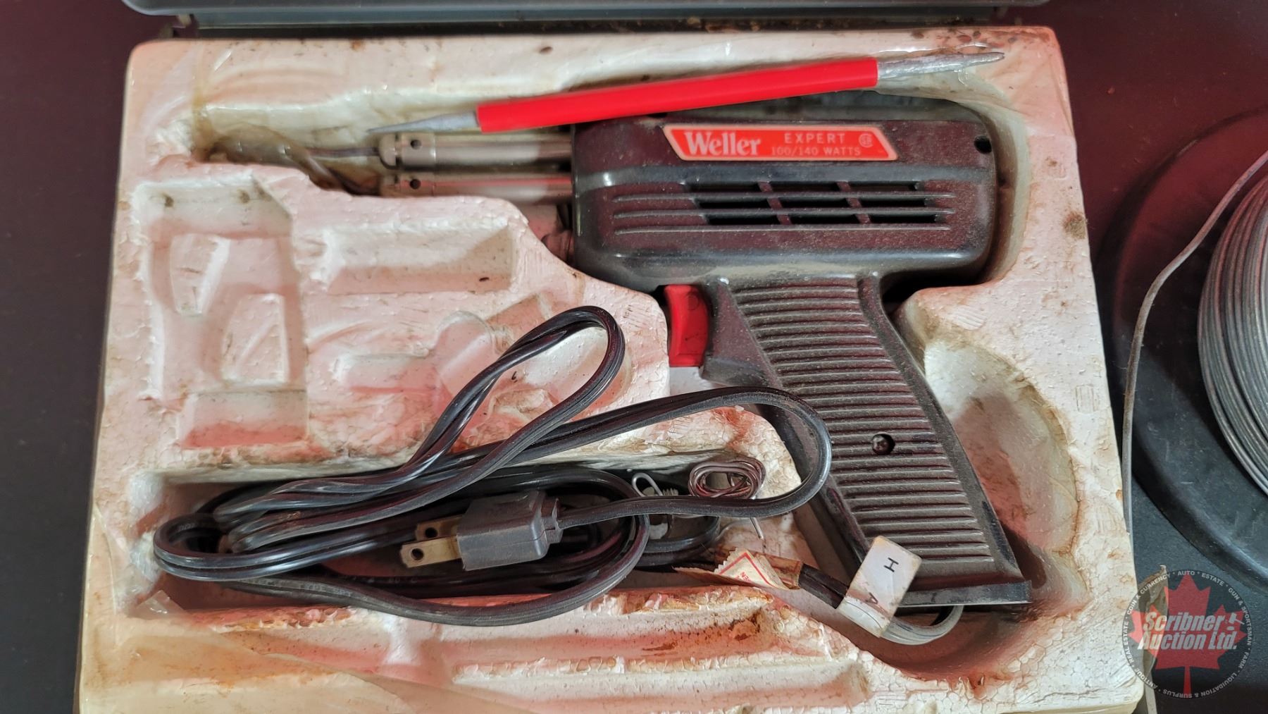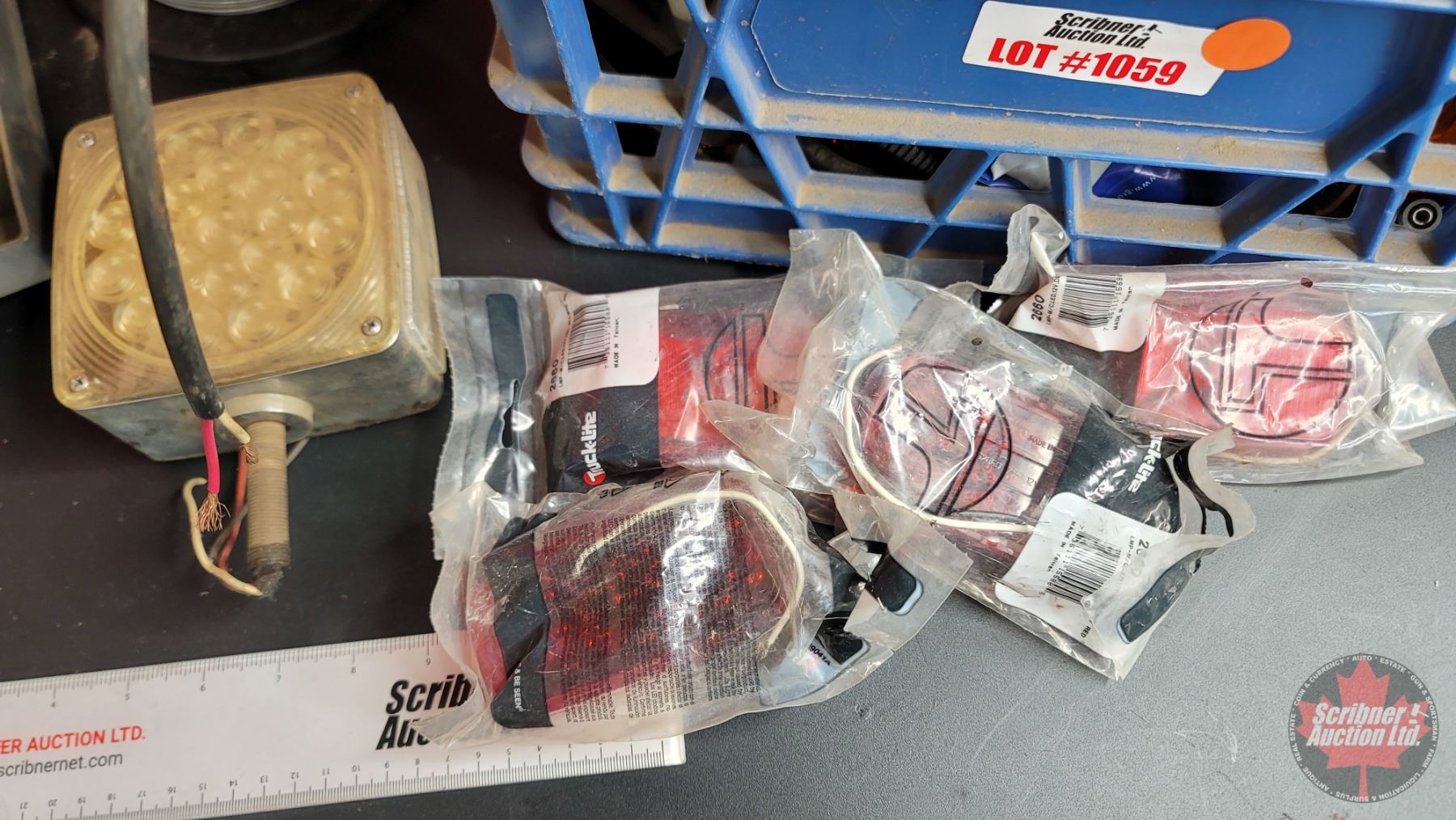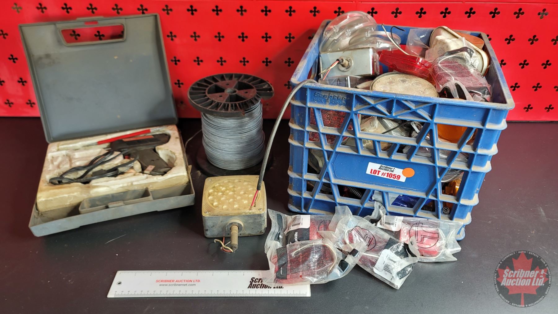 Grouping: Variety of Lights in Milk Crate; Wire; Soldering Gun; etc!