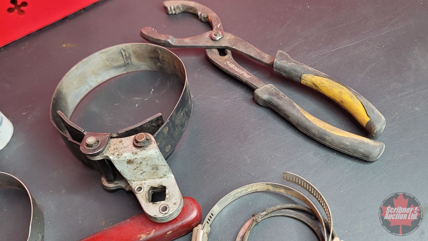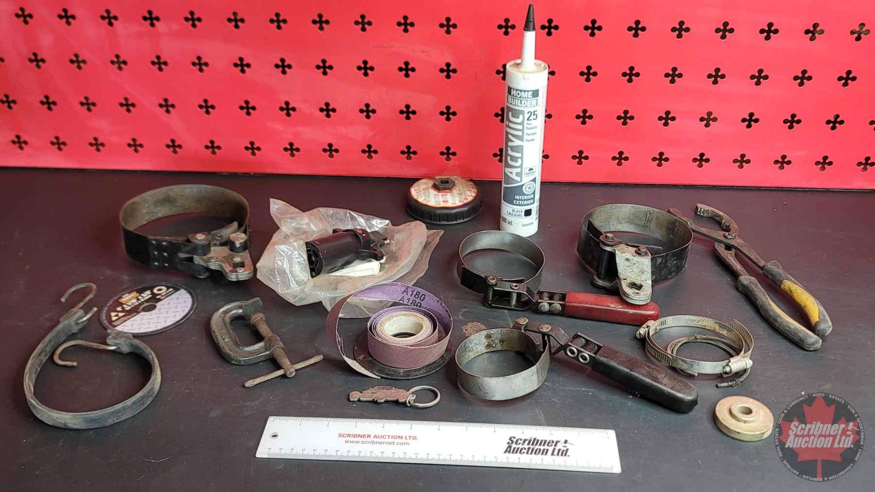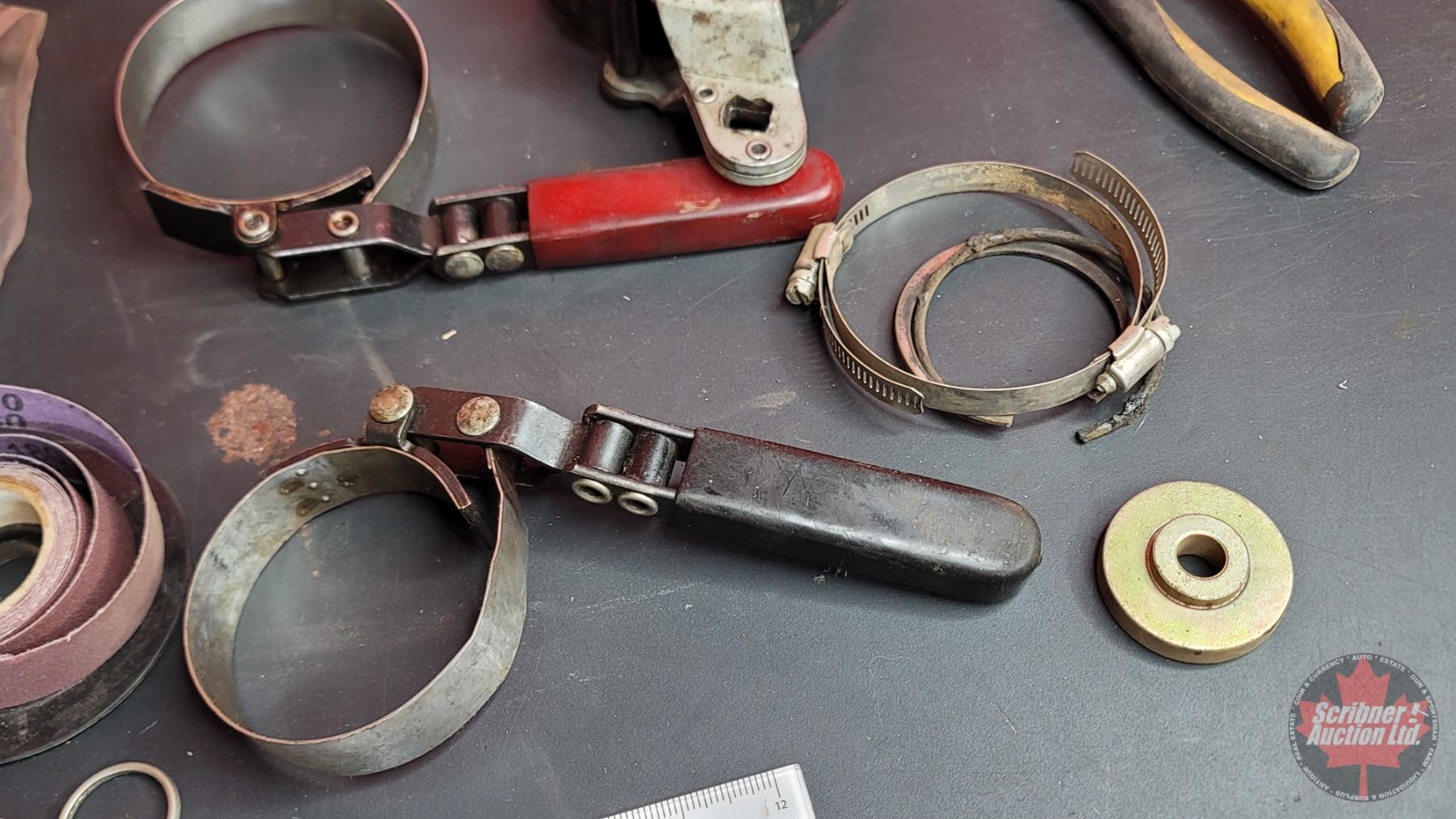 Grouping: Variety of Oil Filter Wrenches; Emery Cloth; 7-4 Pin Trailer Adaptor; etc!