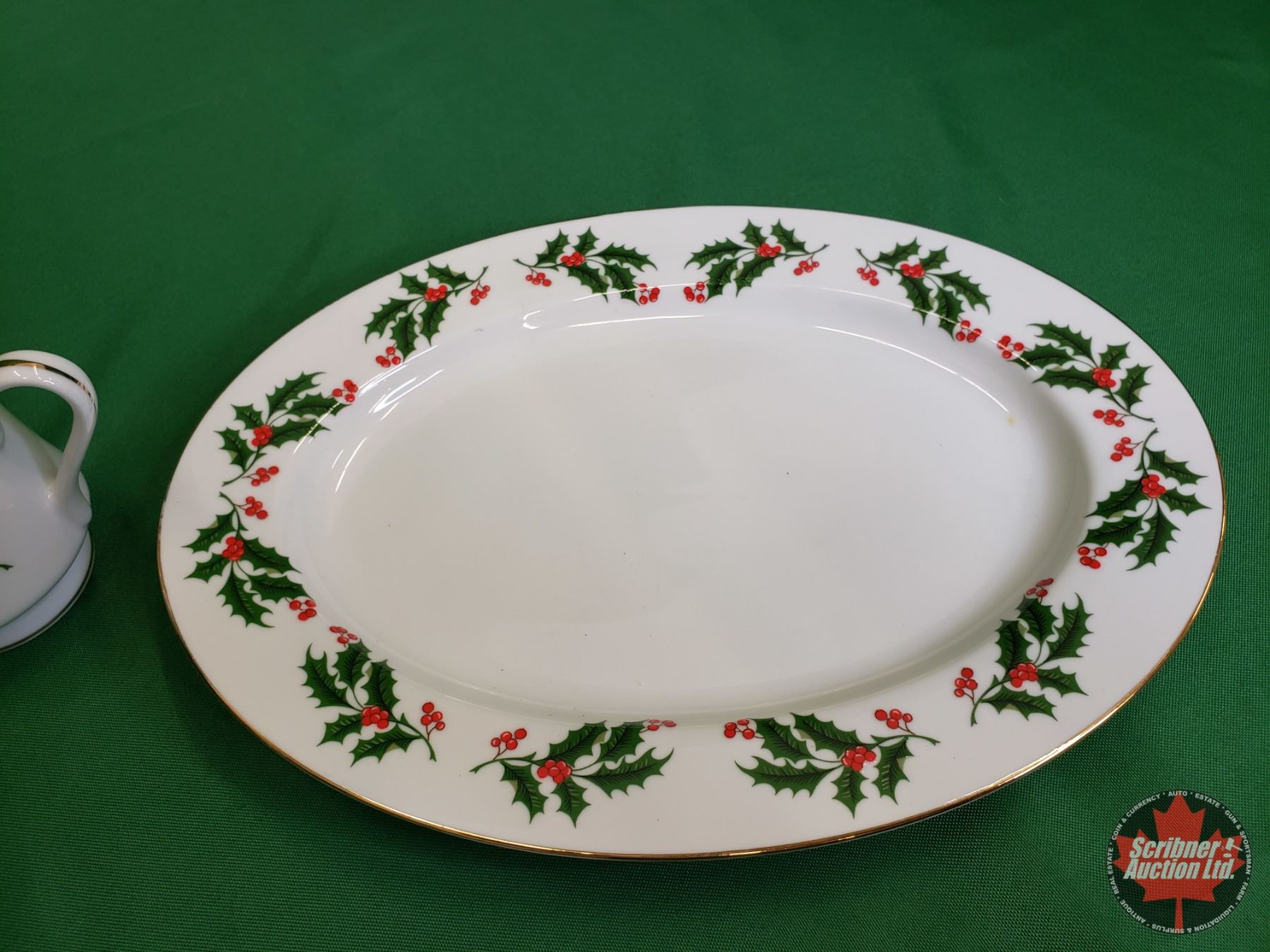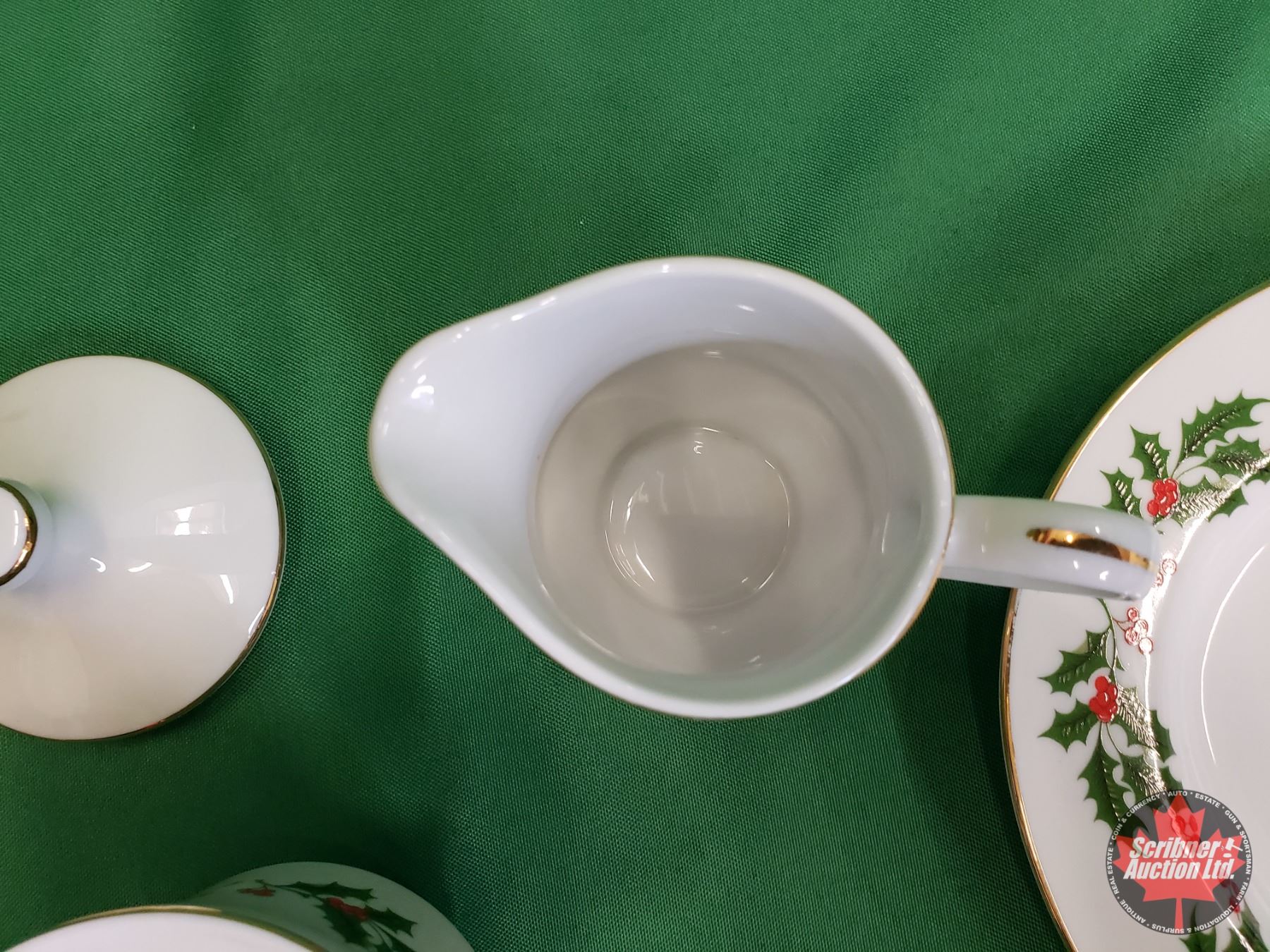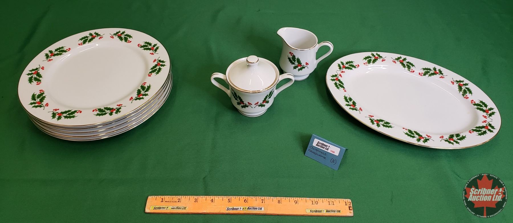 Guest Consignor : Vintage ~ Christmas Fine China (8 pcs) (Serving Platter; Cream & Sugar; Plates) (SEE PICS!)