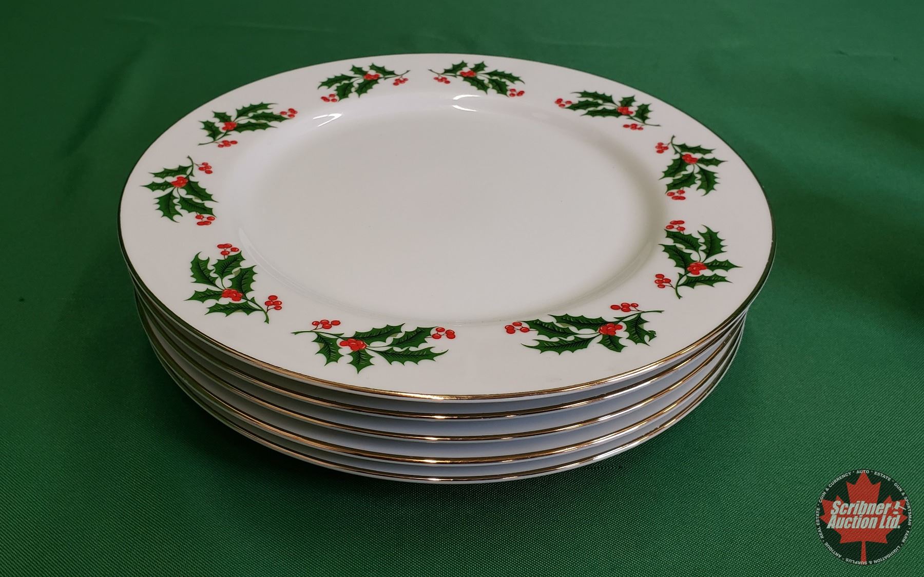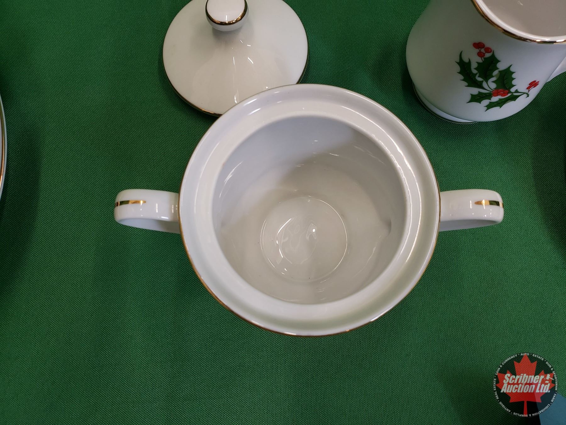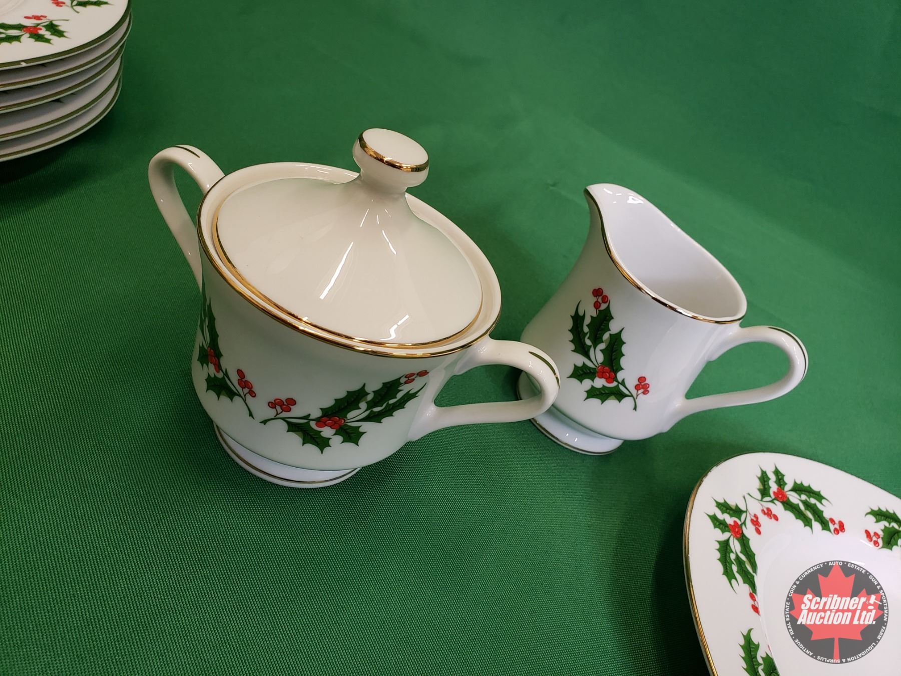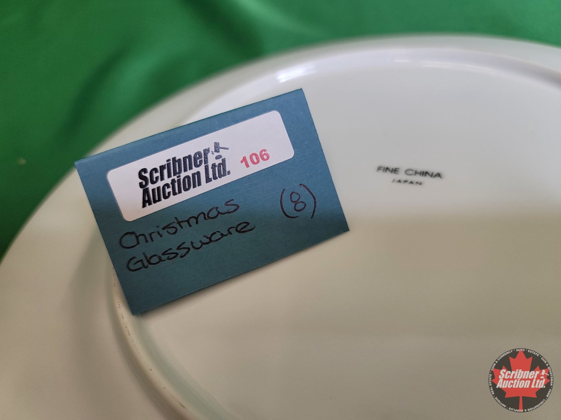 Guest Consignor : Vintage ~ Christmas Fine China (8 pcs) (Serving Platter; Cream & Sugar; Plates) (SEE PICS!)