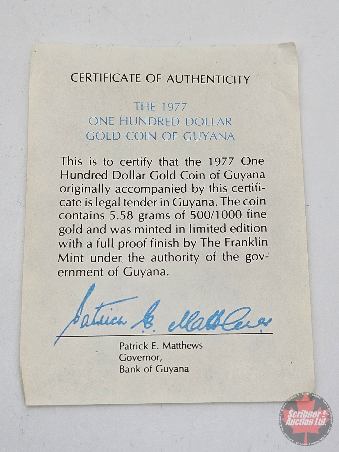 Guyana : 1977 One Hundred Dollar Gold Coin Proof (.500 Gold) (Estate Lot)