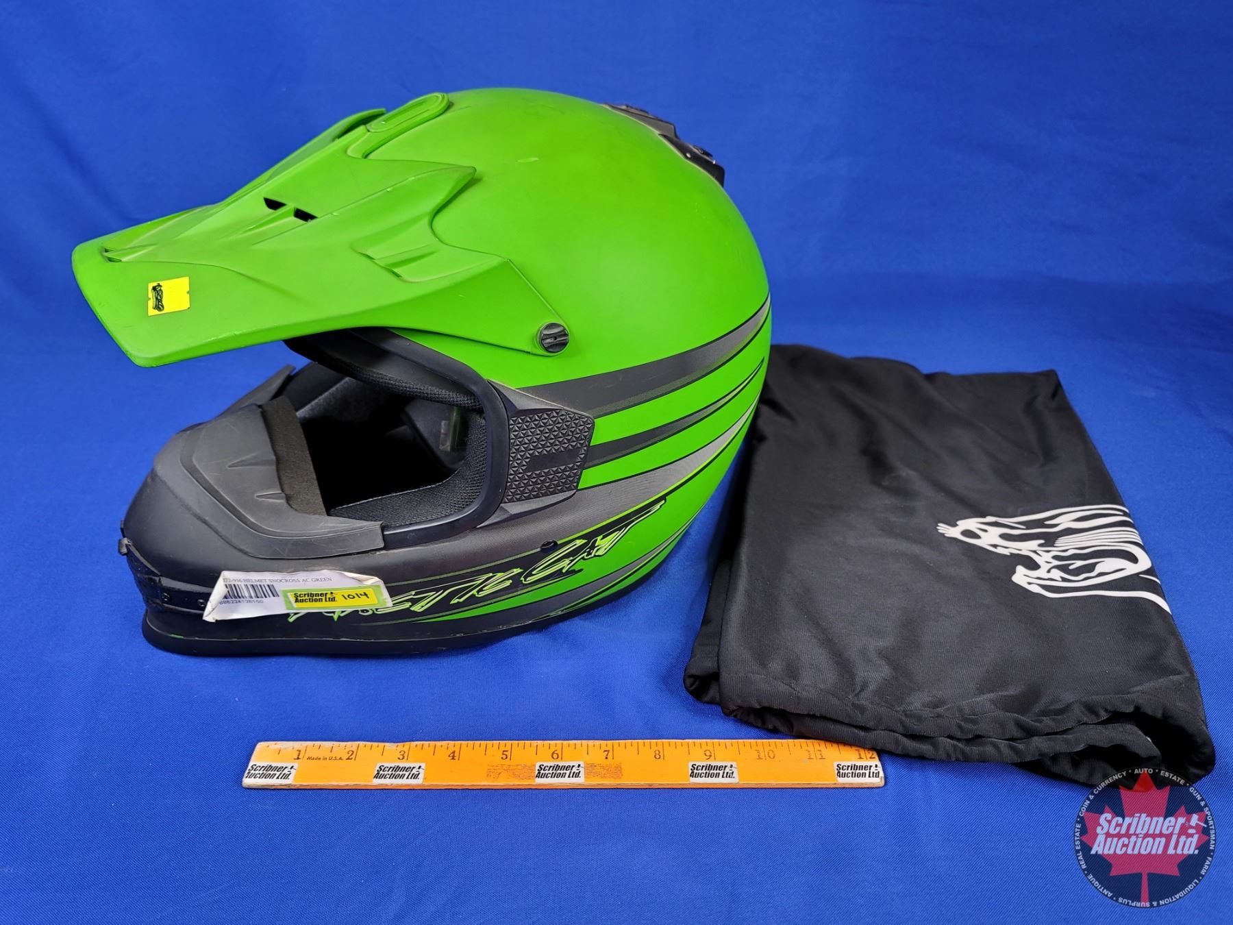 HELMET : Arctic Cat Snocross DOT (Green) Size : XL (Note : Scratches) (SEE PICS)