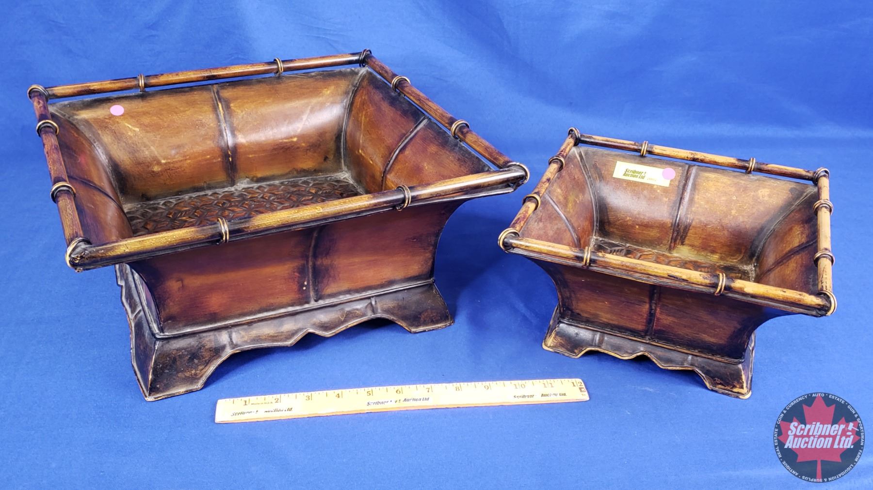 HOME DÉCOR : Indoor Tin Plant Pots (2) (Largest : 7"H x 14-1/2"W x 14-1/2"D) (SEE PICS!)