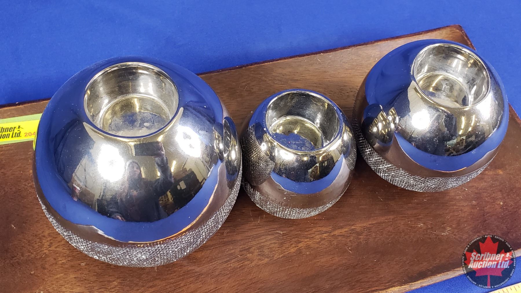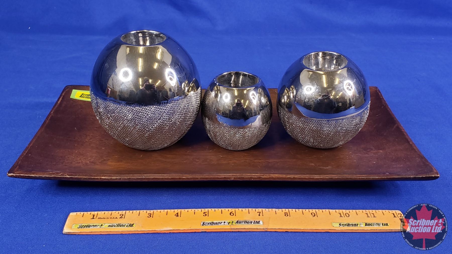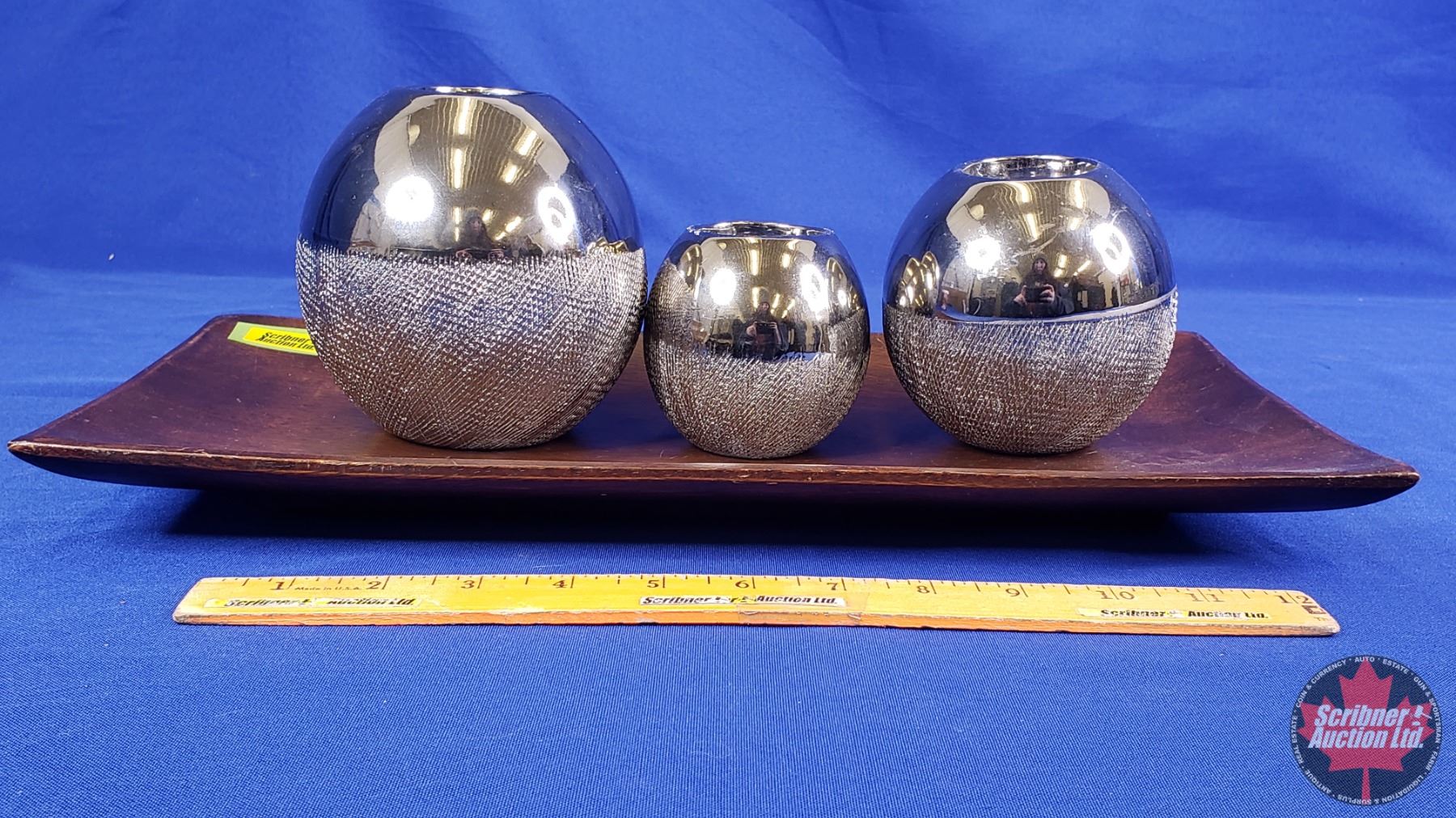HOME DÉCOR : Tea Light Candle Holders (3) & Trinket Tray (Tray Measures : 16"L x 8"W) (SEE PICS!)