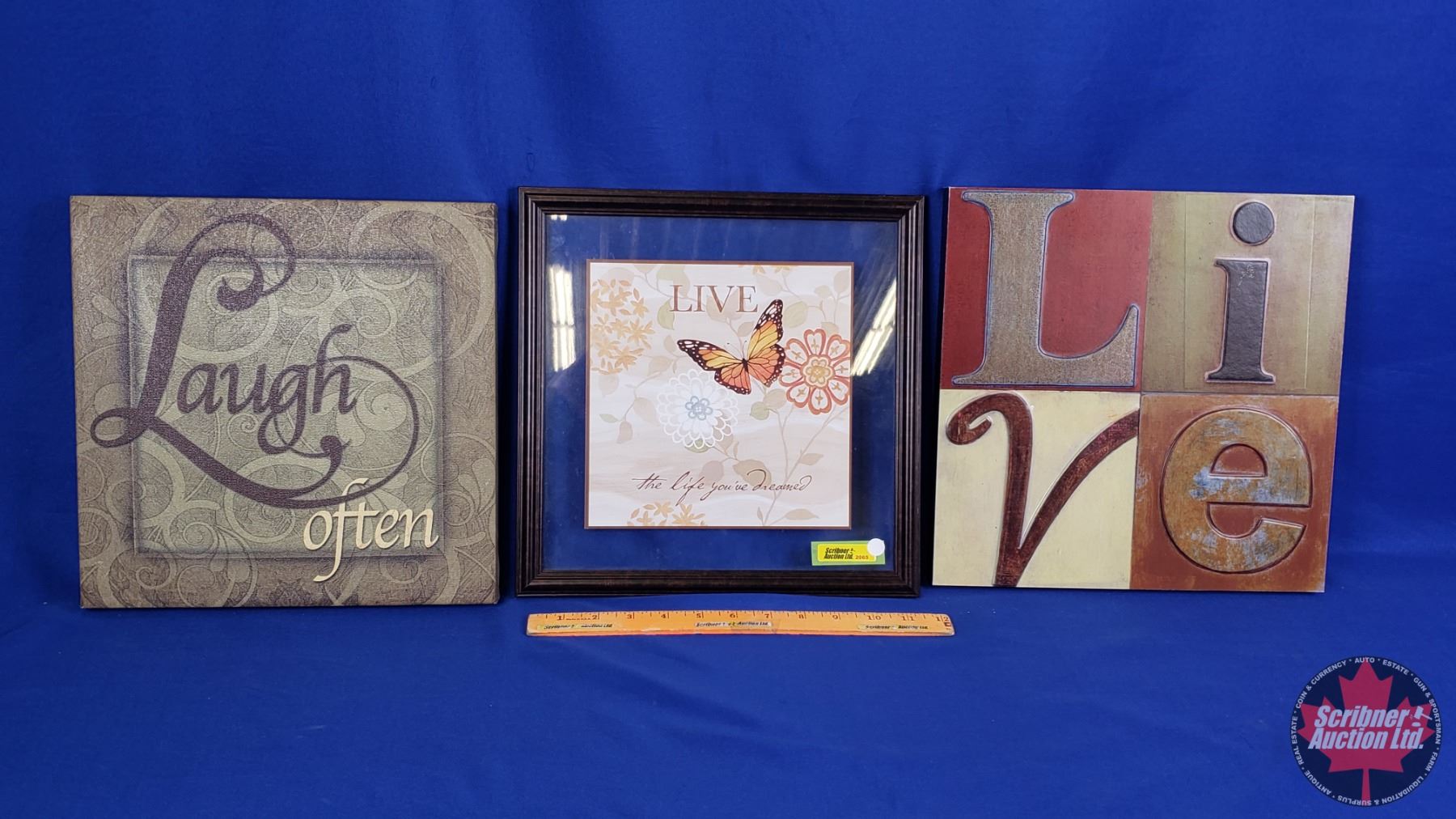HOME DÉCOR - Wall Art : "Laugh Often" Canvas, "Live the Life you Dream" Framed Glass & "Live" Wooden (12"H x 12"W) (SEE PICS!)