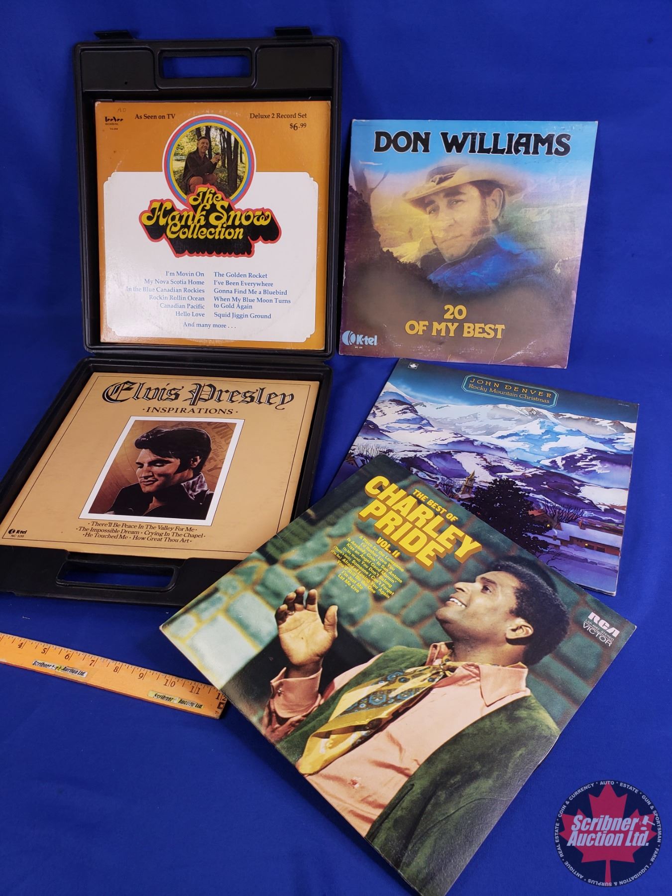 Hard Case Album Carrier w/Albums (5) Incl : Charley Pride, John Denver, Don Williams, Elvis & Hank S