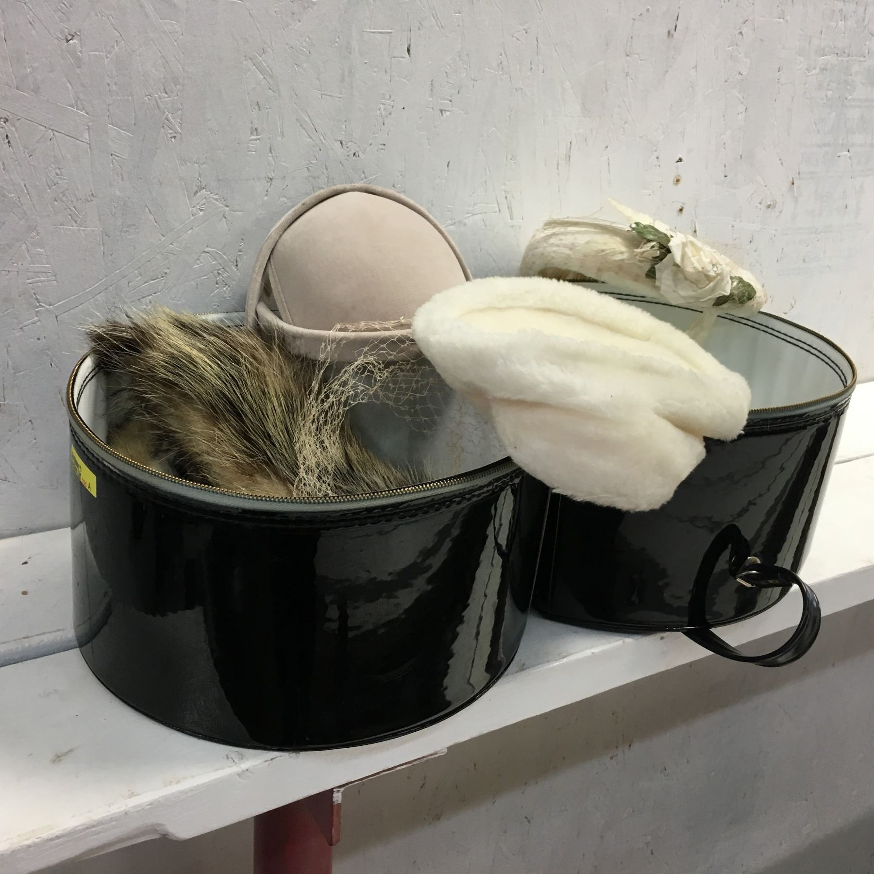 Hat Box w/Ladies Hats (3) & Fur Collar