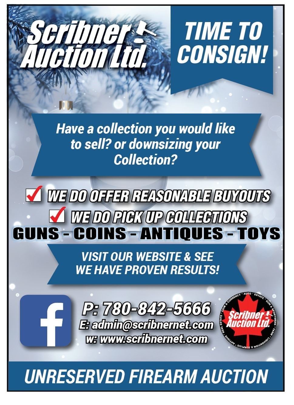 For other inquiries, please call Scribner Auction 780-842-5666