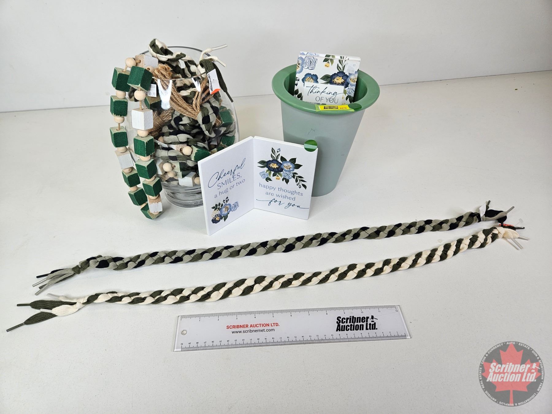 Home Décor Combo : Vases (2), Rope Garland, "Thinking of You" Hard Cards