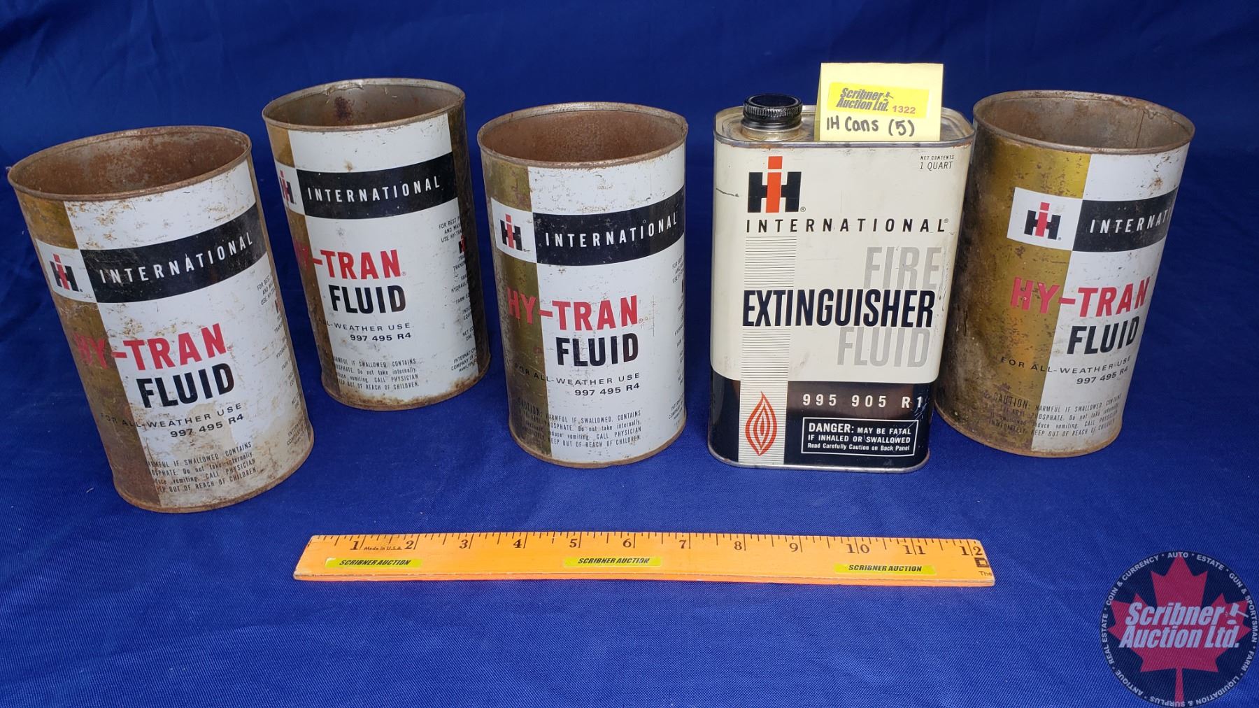 IH International Hy-Tran Fluid Tins (4) / Fire Extinguisher Fluid Tin "1 Quart" (Full) (1)